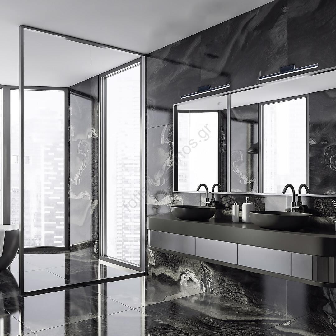 Η μοντέρνα απλίκα μπάνιου Evan αποτελεί εξαιρετική επιλογή για τον φωτισμό του χώρου πάνω από τον νιπτήρα. Η ματ μαύρη απλίκα, κατασκευασμένη από μέταλλο και αλουμίνιο, συμπληρώνεται από λευκό πλαστικό καπέλο. Το φωτιστικό διαθέτει ενσωματωμένη LED πηγή φωτός με ισχύ 18W, φωτεινή ροή 1850 lumen και διάρκεια ζωής 20.000 ώρες. Η πηγή φωτός έχει θερμοκρασία χρώματος 4000 K, προσφέροντας φυσικό λευκό φως. Η απλίκα Evan διαθέτει βαθμό στεγανότητας IP44, που εξασφαλίζει προστασία από την είσοδο αντικειμένων διαμέτρου έως 1 mm και από πιτσιλιές νερού από οποιαδήποτε κατεύθυνση. Οι διαστάσεις αυτού του απλίκα μπάνιου είναι: πλάτος 630 mm, ύψος 75 mm, απόσταση από τον τοίχο 100 mm. Προσφέρουμε 5 χρόνια εγγύηση για αυτό το μοντέλο. Το φωτιστικό είναι κατάλληλο για εγκατάσταση σε όλους τους τύπους επιφανειών.