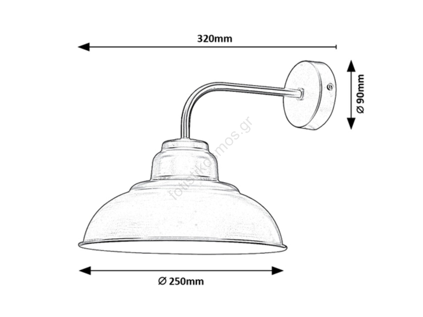 Το επιτοίχιο φωτιστικό Dragan, που αντιπροσωπεύει το βιομηχανικό στυλ, θα αποτελέσει ένα χαρακτηριστικό κομμάτι της διακόσμησης του σαλονιού ή του υπνοδωματίου σας. Το ματ μαύρο μεταλλικό φωτιστικό συμπληρώνεται από μια ευρεία ομπρελοειδή καπέλο, το οποίο είναι βαμμένο εσωτερικά σε λευκό χρώμα. Το φωτιστικό μπορεί να στερεωθεί στον τοίχο μέσω μιας στρογγυλής διακοσμητικής βάσης. Το φωτιστικό Dragan μπορεί να χρησιμοποιηθεί με μία λάμπα ισχύος έως 60W. Ο τύπος βάσης είναι E27. Ανάλογα με τις προτιμήσεις σας, μπορείτε να επιλέξετε για αυτό το φωτιστικό είτε θερμό είτε φυσικό λευκό φως. Εάν το τοποθετήσετε στο υπνοδωμάτιο, προτείνουμε λάμπα που εκπέμπει θερμό λευκό φως, το οποίο θα σας βοηθήσει να δημιουργήσετε μια ζεστή, οικεία ατμόσφαιρα. Οι διαστάσεις του επιτοίχιου φωτιστικού Dragan είναι οι εξής: πλάτος και ύψος 250 mm, απόσταση από τον τοίχο 320 mm, διάμετρος στερέωσης 90 mm. Αυτό το μοντέλο παραδίδεται χωρίς φωτιστική πηγή.
