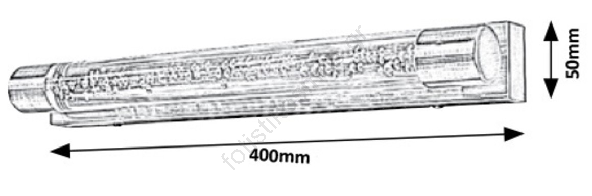 Η επιτοίχια φωτιστική εγκατάσταση μπάνιου Abbey αντιπροσωπεύει το κλασικό στυλ. Το αντίκα φωτιστικό σε χρωμιωμένο φινίρισμα συνοδεύεται από διάφανο καπέλο λάμπας, που αναδεικνύει την εμφάνιση με φυσαλίδες της λάμπας. Το φωτιστικό Abbey, τοποθετημένο πάνω από τον νιπτήρα ή τον καθρέφτη, φωτίζει το μπάνιο με φυσικό λευκό φως, δημιουργώντας μια ευχάριστη ατμόσφαιρα. Το λευκό επιτοίχιο φωτιστικό είναι κατασκευασμένο από μέταλλο και πλαστικό και διαθέτει ενσωματωμένη ενεργειακά αποδοτική πηγή φωτός LED. Η ισχύς της πηγής φωτός είναι 10 W, η φωτεινότητά της 900 lumen, η θερμοκρασία χρώματος 4.000 K και η διάρκεια ζωής της δεν είναι μικρότερη από 30.000 ώρες. Η λάμπα Abbey έχει βαθμό προστασίας IP44, που εξασφαλίζει προστασία από την είσοδο αντικειμένων με μέγιστη διάμετρο 1 mm, καθώς και από πιτσιλιές νερού από οποιαδήποτε κατεύθυνση. Οι διαστάσεις του φωτιστικού είναι: μήκος 400 mm, απόσταση από τον τοίχο 50 mm. Το φωτιστικό μπάνιου Abbey συνοδεύεται από 5ετή εγγύηση.