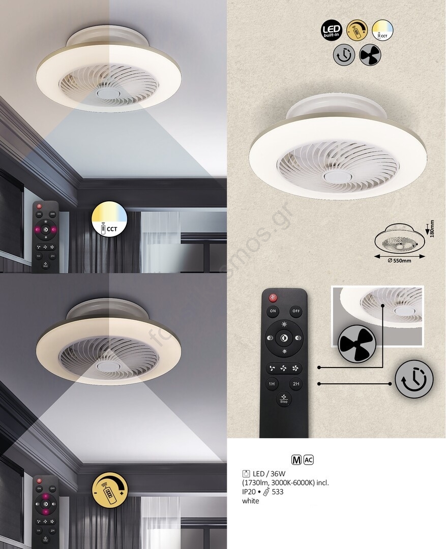 • Φωτιστικό οροφής με ανεμιστήρα, που ταιριάζει σχεδόν σε κάθε σύγχρονο διαμέρισμα ή σπίτι.