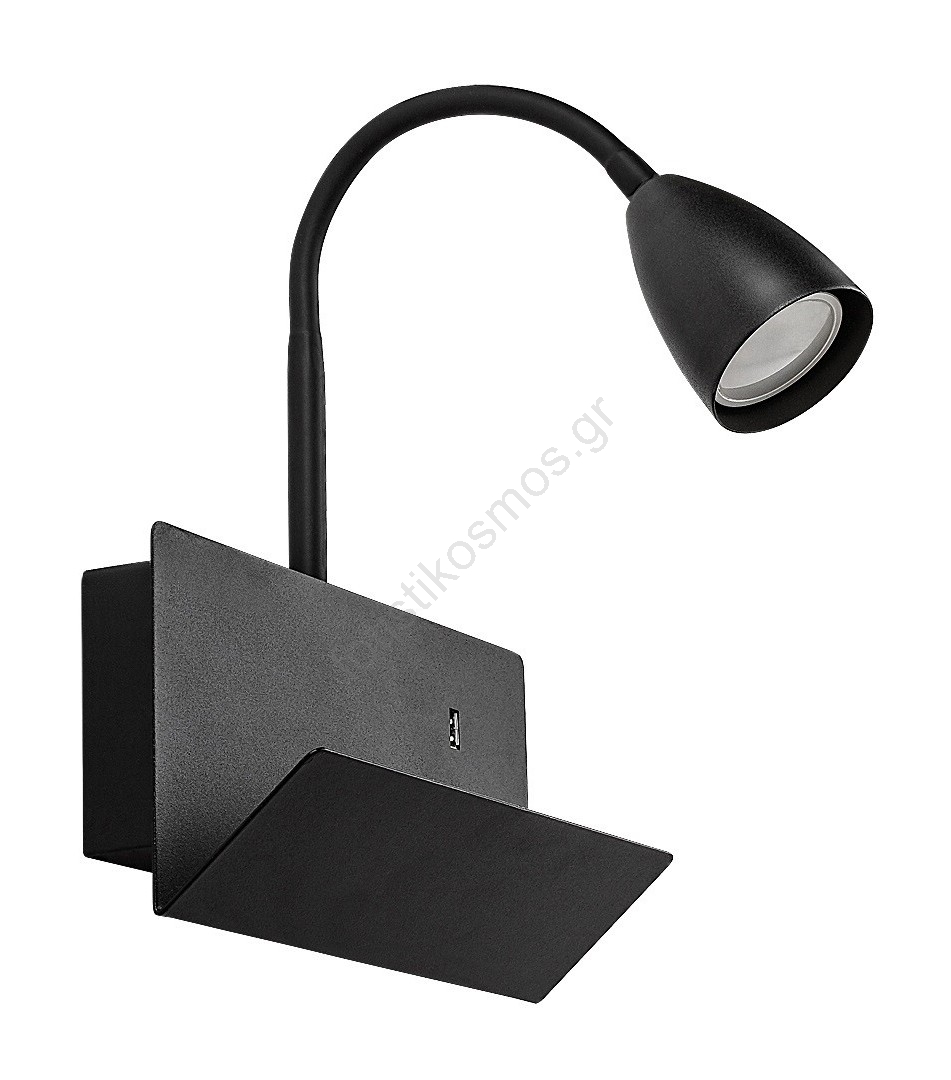 • Πρακτικό επιτοίχιο φωτιστικό με ράφι και θύρα USB.