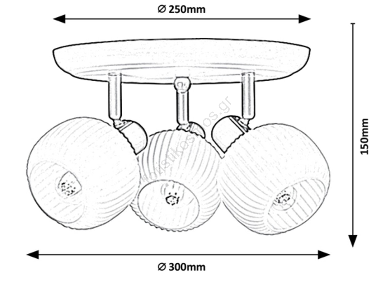 Το τριπλό φωτιστικό σημείου Soraya σε σκανδιναβικό στυλ θα γίνει αγαπημένο κομμάτι επίπλου στο σαλόνι, το υπνοδωμάτιο, την τραπεζαρία ή ακόμα και την κουζίνα σας. Το γκρι μεταλλικό φωτιστικό συμπληρώνεται από καπέλα από λευκό γυαλί και μπορεί να στερεωθεί στο ταβάνι μέσω μιας μεγάλης στρογγυλής διακοσμητικής βάσης. Τα καπέλα με ραβδώσεις έχουν στρογγυλό σχήμα και είναι ανοιχτά στο κάτω μέρος. Με τρεις ευέλικτες κεφαλές, αυτό το φωτιστικό σημείου φωτίζει άψογα τον χώρο προς όλες τις κατευθύνσεις. Το φωτιστικό Soraya λειτουργεί με τρεις λάμπες, κάθε μία με ισχύ έως 40W. Ο τύπος βάσης είναι E14. Για να δημιουργήσετε μια ζεστή, φιλόξενη ατμόσφαιρα στο δωμάτιο, επιλέξτε θερμές λευκές πηγές φωτός για αυτό το φωτιστικό. Αν προτιμάτε ένα καθαρό, μοντέρνο αποτέλεσμα, χρησιμοποιήστε λάμπες με φυσικό λευκό φως. Οι διαστάσεις του τριπλού φωτιστικού σημείου Soraya είναι: διάμετρος 300 mm, απόσταση από το ταβάνι 150 mm, διάμετρος εγκατάστασης 250 mm. Αυτό το μοντέλο παραδίδεται χωρίς πηγές φωτός.
