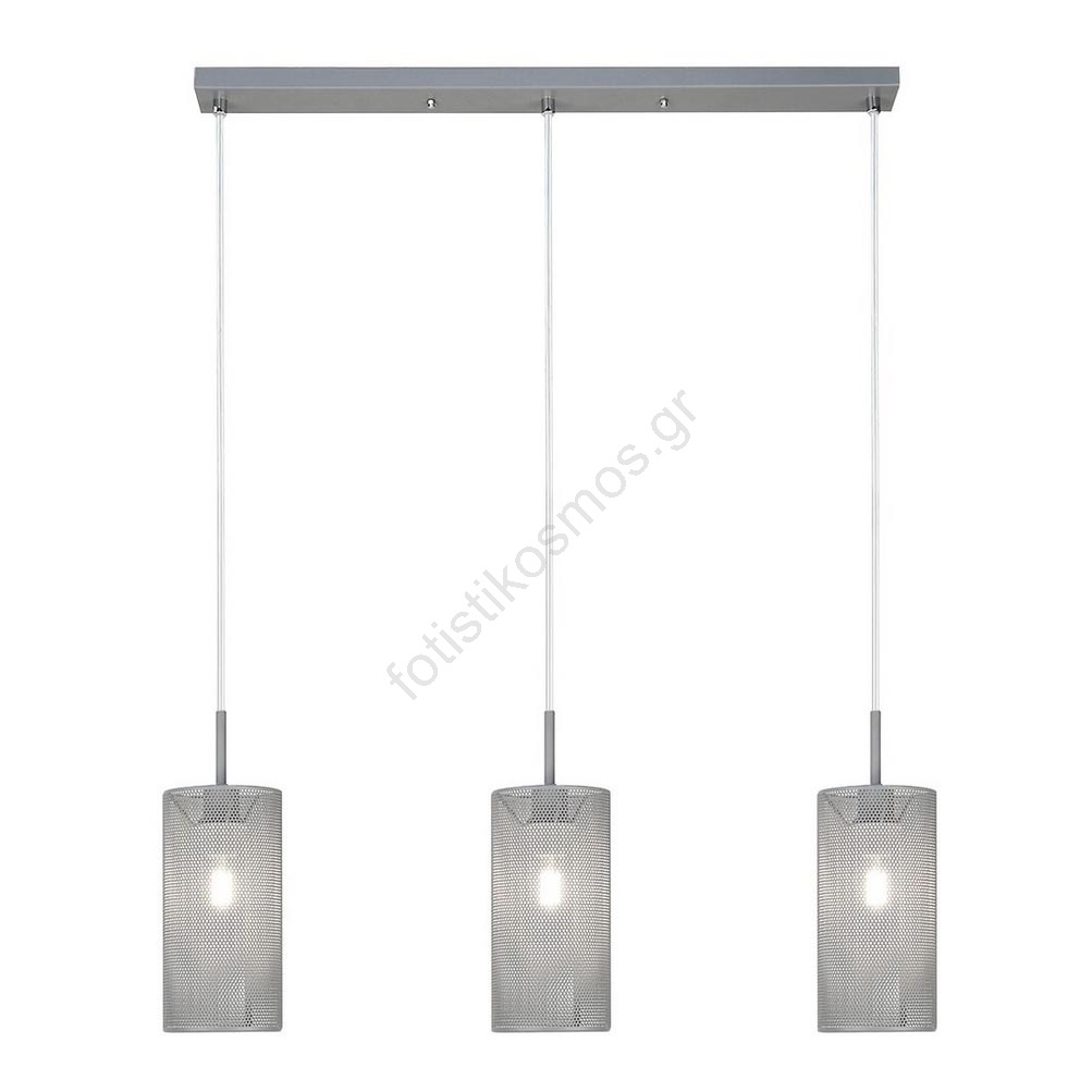 Το τριπλό κρεμαστό φωτιστικό Callia, που αντιπροσωπεύει μοντέρνο στυλ, θα αποτελέσει ένα εντυπωσιακό έπιπλο στο σαλόνι, την τραπεζαρία ή την κουζίνα σας. Αυτό το γκρι μοντέλο διαθέτει μακρύ τετράγωνο διακοσμητικό βάθρο και είναι κατασκευασμένο εξ ολοκλήρου από μέταλλο. Η μοναδική του εμφάνιση προέρχεται από τους κυλινδρικούς καπέλους με διάτρητη δομή, μέσα από τους οποίους το φως φιλτράρεται μυστηριωδώς από το εσωτερικό των κεφαλών του φωτιστικού. Το κρεμαστό φωτιστικό μπορεί να χρησιμοποιηθεί με τρεις πηγές φωτός, η καθεμία με ισχύ έως 25W, με βάση τύπου E14. Για να δημιουργήσετε ένα μοντέρνο και φωτεινό αποτέλεσμα στον χώρο, επιλέξτε λάμπες με φυσικό λευκό φως. Οι διαστάσεις του τριπλού κρεμαστού φωτιστικού Callia είναι οι εξής: συνολικό πλάτος φωτιστικού 640 mm, διάμετρος κάθε καπέλου 100 mm, ύψος 200 mm, απόσταση από την οροφή 1.500 mm, μέγεθος εγκατάστασης 600 mm. Αυτό το μοντέλο παραδίδεται χωρίς πηγές φωτός.