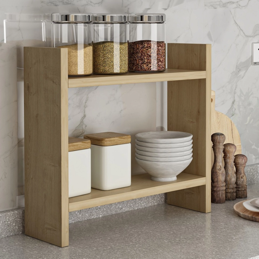 • Μπορείτε να τοποθετήσετε το ράφι πάνω στον πάγκο και να το μετατρέψετε σε πρακτικό χώρο αποθήκευσης για την κουζίνα σας.