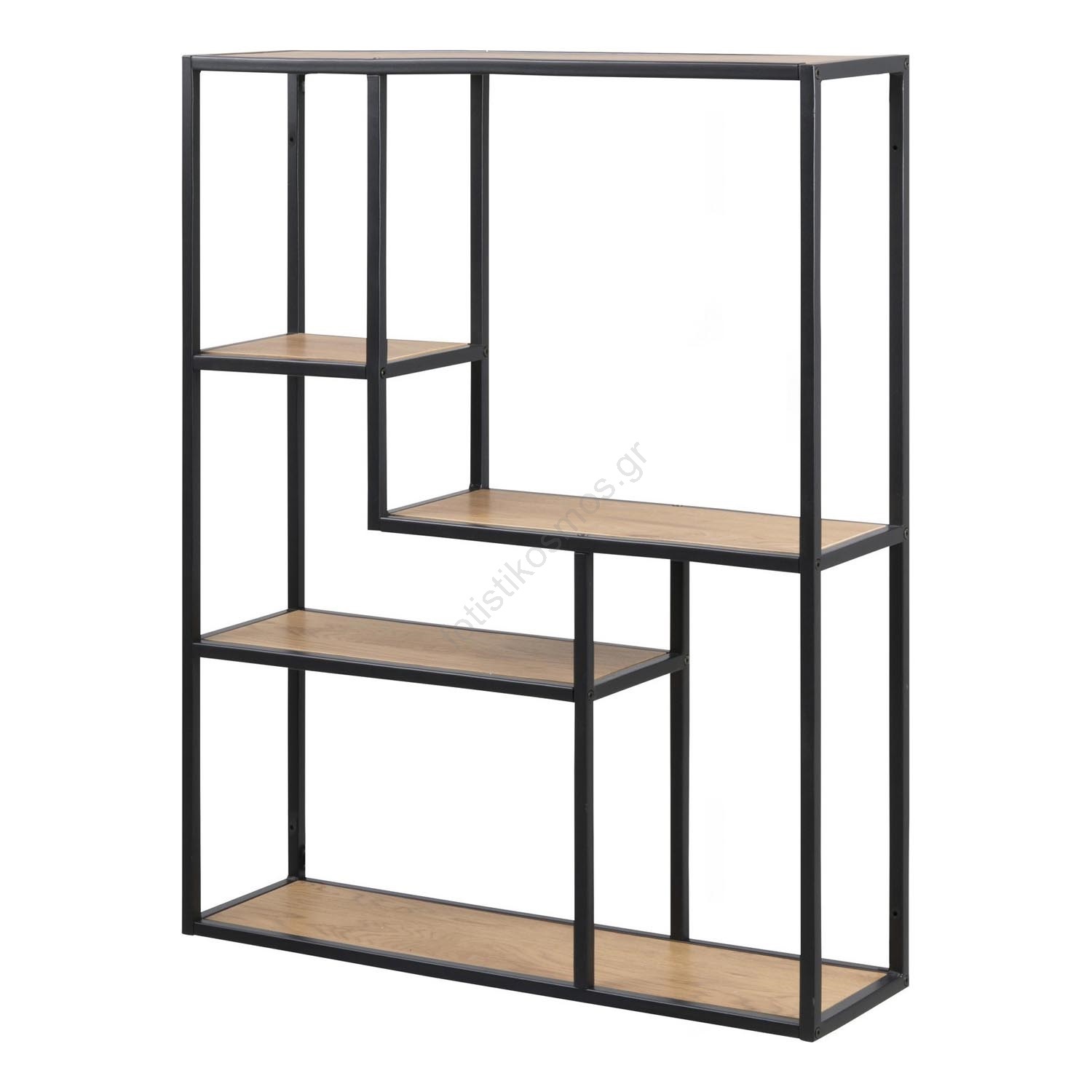 • Πλαίσιο από μαύρο ματ ατσάλι με ηλεκτροστατική βαφή, 3 ράφια από ματ kraft με ασύμμετρες λεπτομέρειες.