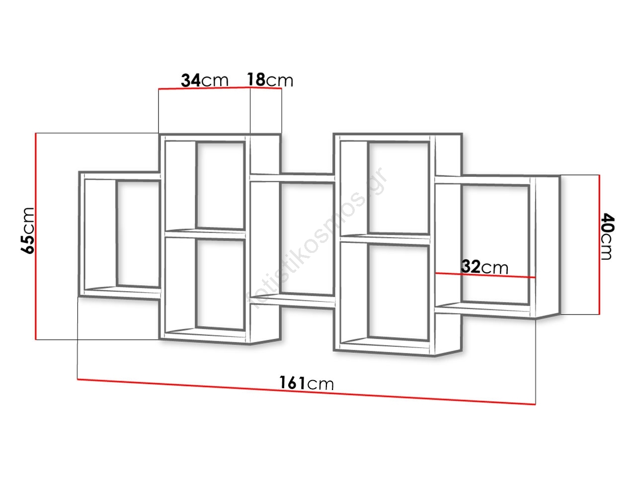 • Επιτοίχιο ράφι για την έκθεση βιβλίων, διακοσμητικών και πολλών άλλων αντικειμένων.