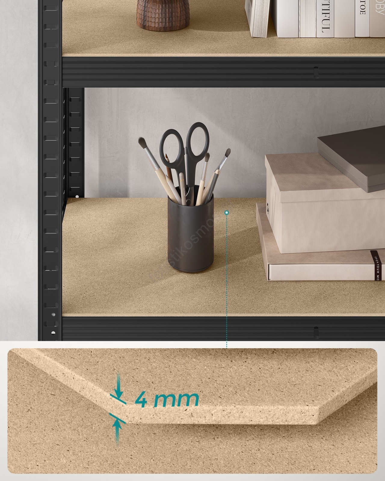 • Κάθε ράφι αντέχει έως 120 kg και μπορεί με ασφάλεια να φιλοξενήσει βαφές, εργαλεία και εξοπλισμό γυμναστικής.