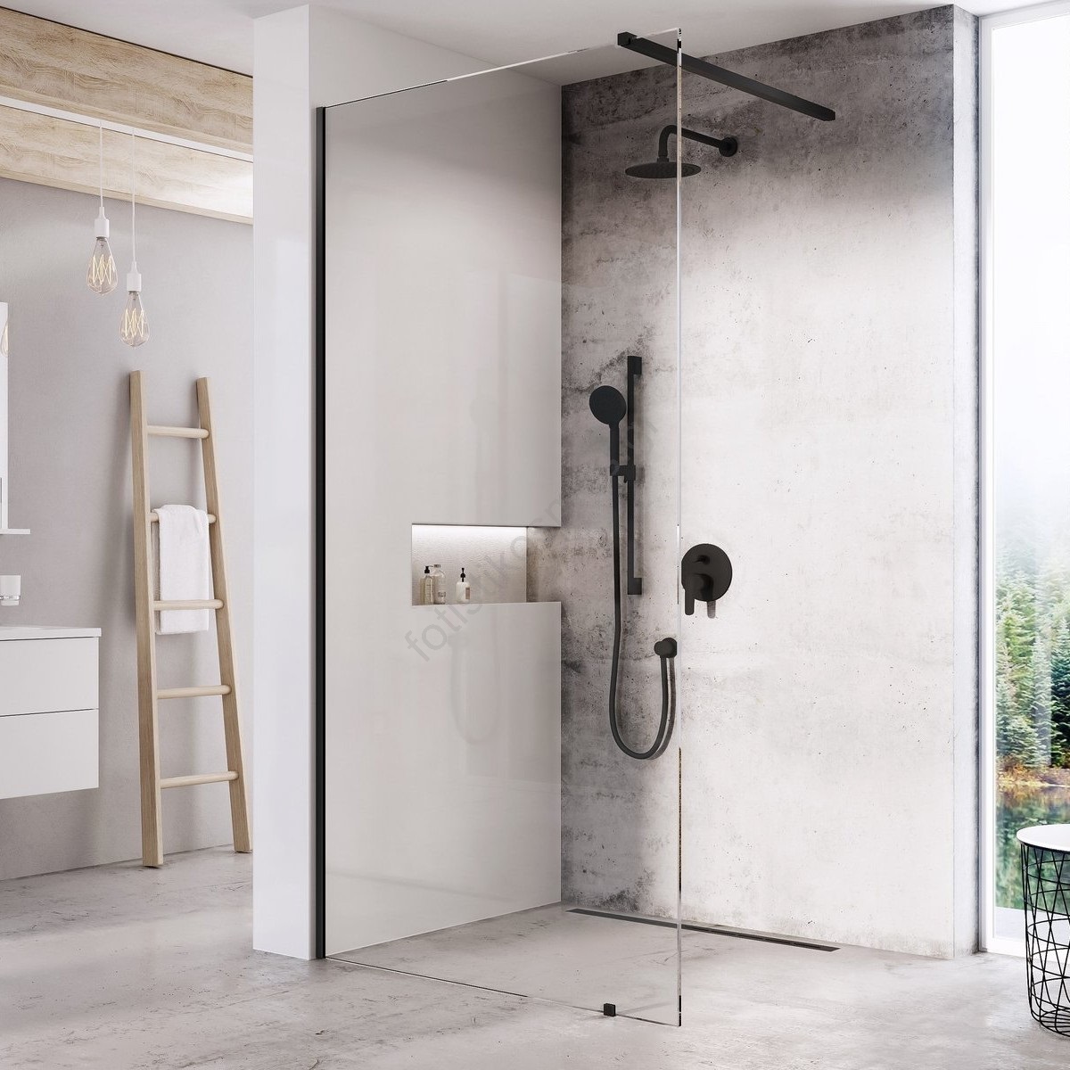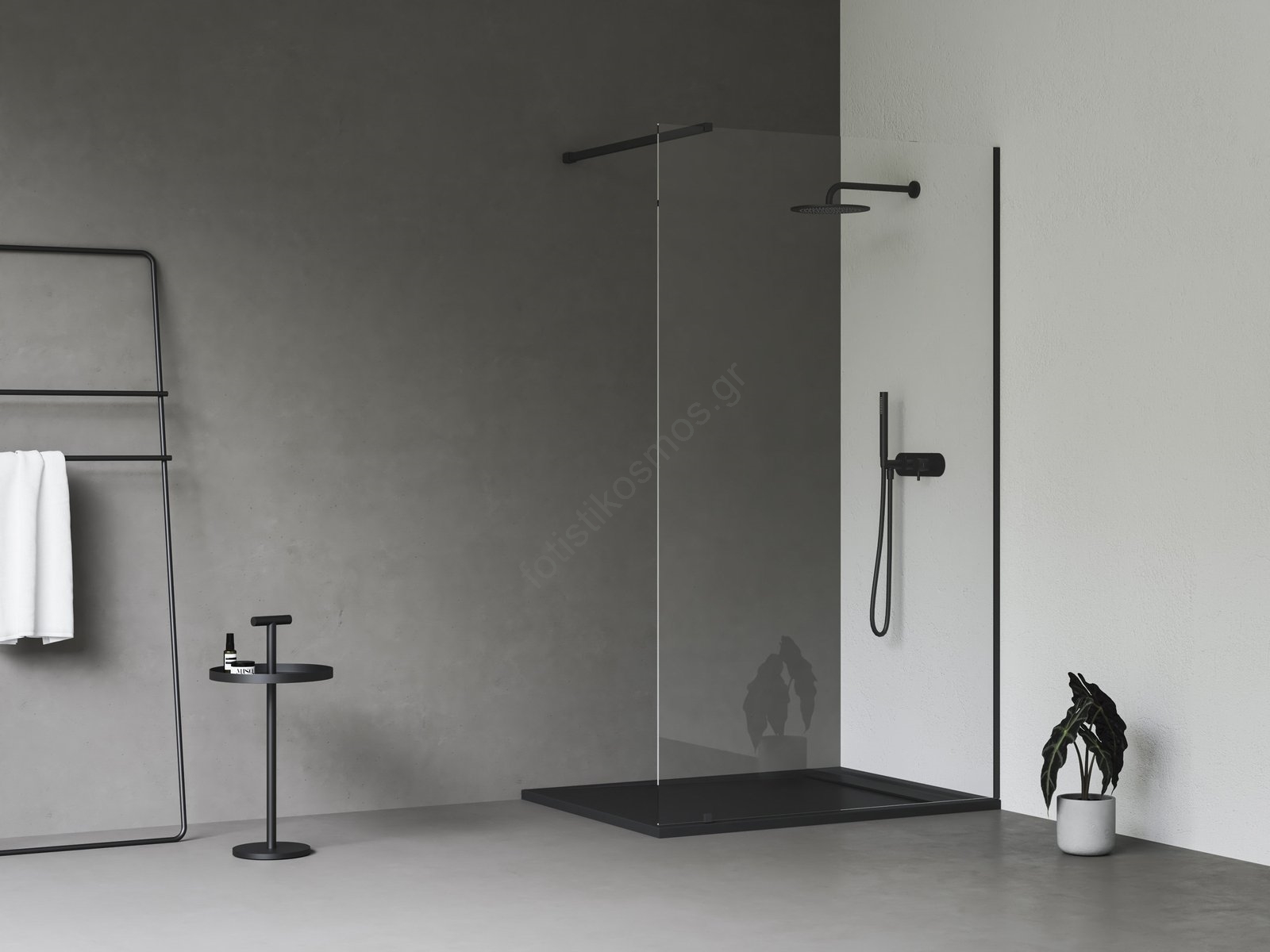 • Η ντουζιέρα Walk-In Wall σε μαύρο φινίρισμα προσφέρει σύγχρονη, ανοιχτού τύπου είσοδο, που μπορεί να προσαρμοστεί στις ανάγκες σας έως σε πλάτος 120 cm.
