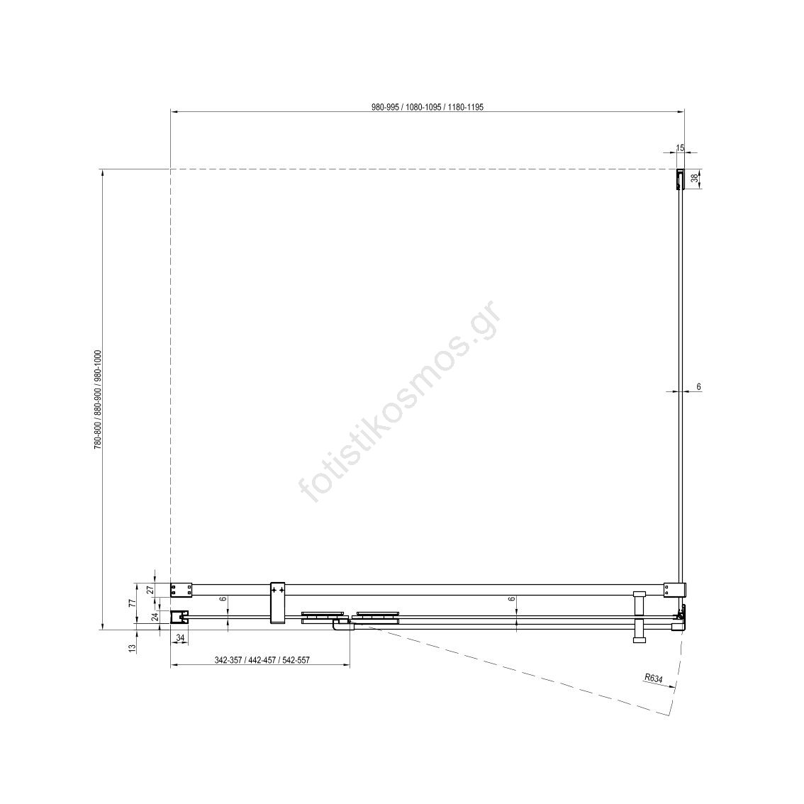 • Τα προφίλ είναι σε φινίρισμα γυαλιστερού χρωμίου και η πλήρωση είναι από ασφαλές γυαλί πάχους 6 mm με διάφανη επεξεργασία.