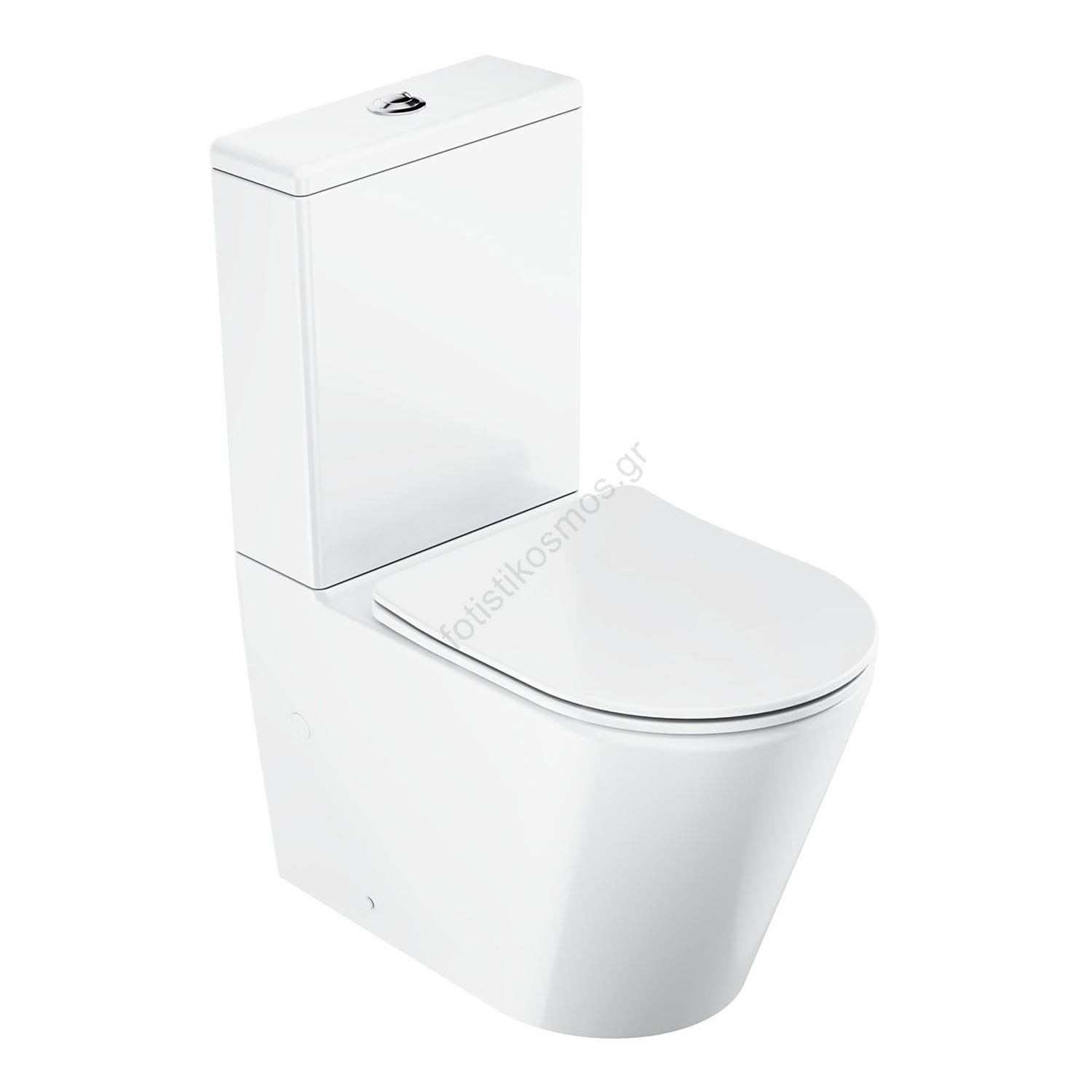 • Το WC kombi Elegant RimOff είναι κατασκευασμένο από μονοκόμματο κεραμικό με υψηλής ποιότητας γυάλωμα που δεν απαιτεί πρόσθετες επιφανειακές επεξεργασίες, ούτε στην πίσω όψη.