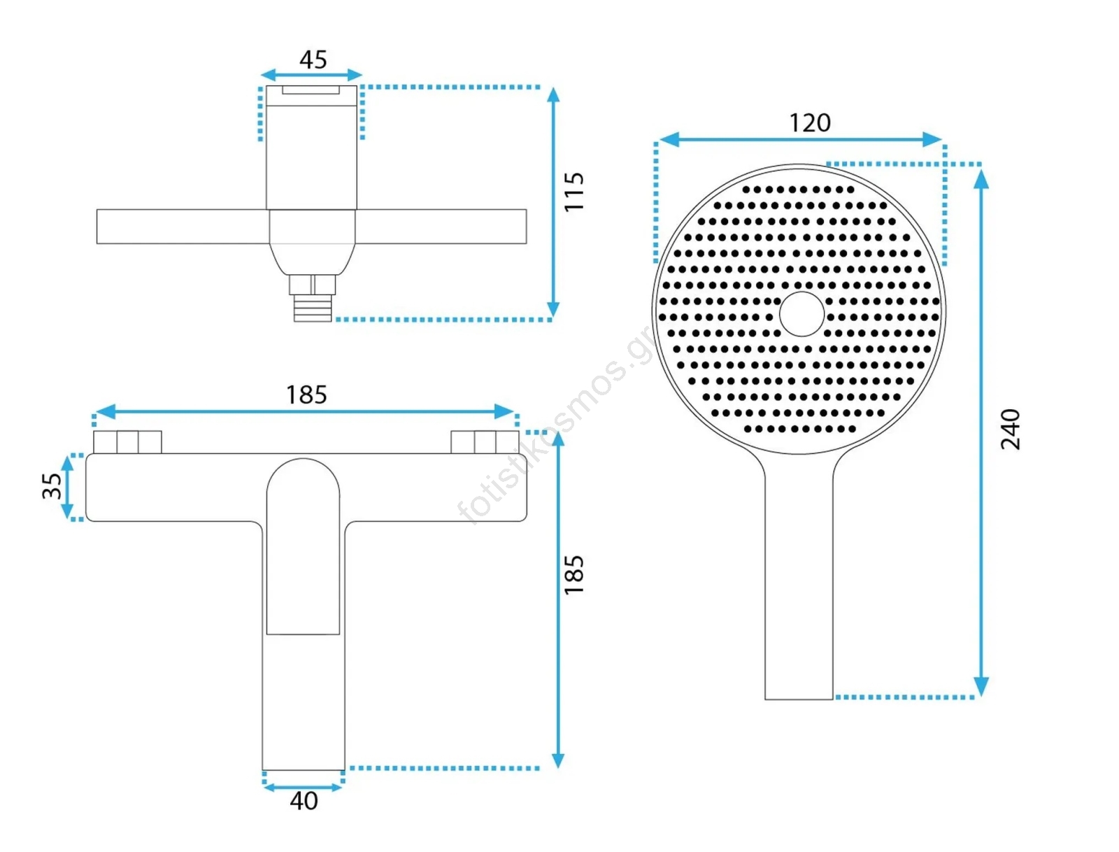 • Σετ περιλαμβάνει: μίκτης μπανιέρας, χειρολαβή ντους, σωλήνας ντους (120 mm), βάση χειρολαβής ντους.