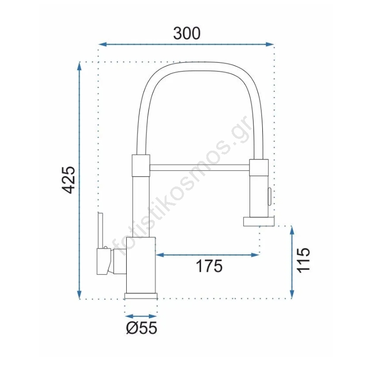 • Μπαταρία κουζίνας ενός μοχλού για υψηλή πίεση, με περιστρεφόμενο ρουξούνι.