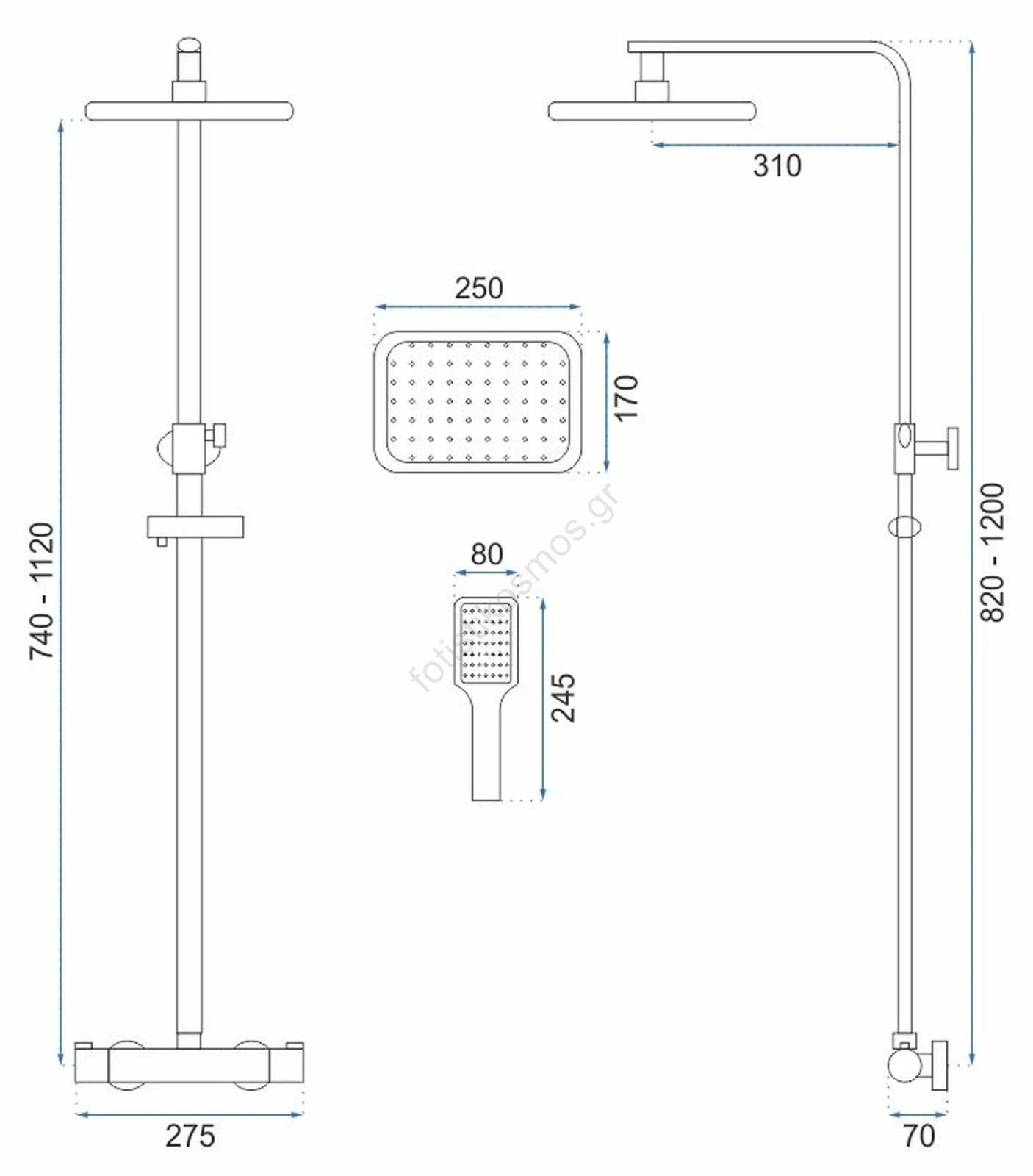 • Ρύθμιση της ράβδου ντους: 82 - 120 εκ.