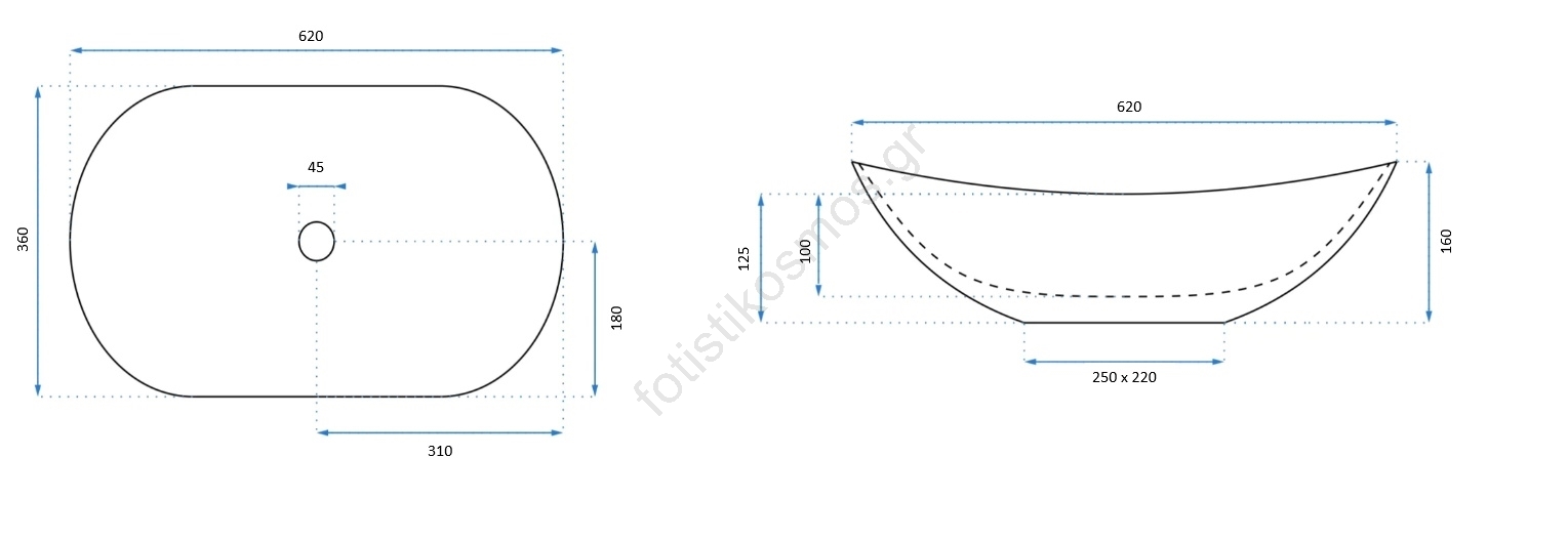 REA-U0441 - Επιτραπέζιος νιπτήρας ROYAL 35,5x61,5 cm, κεραμικός, γυαλιστερό λευκό | Fotisti kosmos