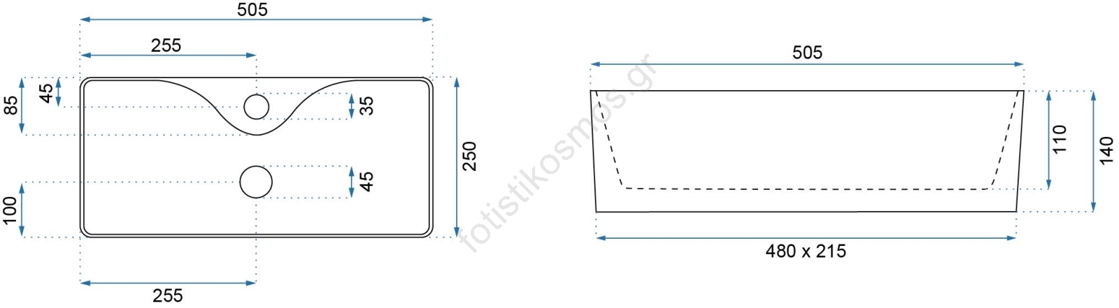 • Ο νιπτήρας είναι κατασκευασμένος από υψηλής ποιότητας υγειονομική κεραμική.