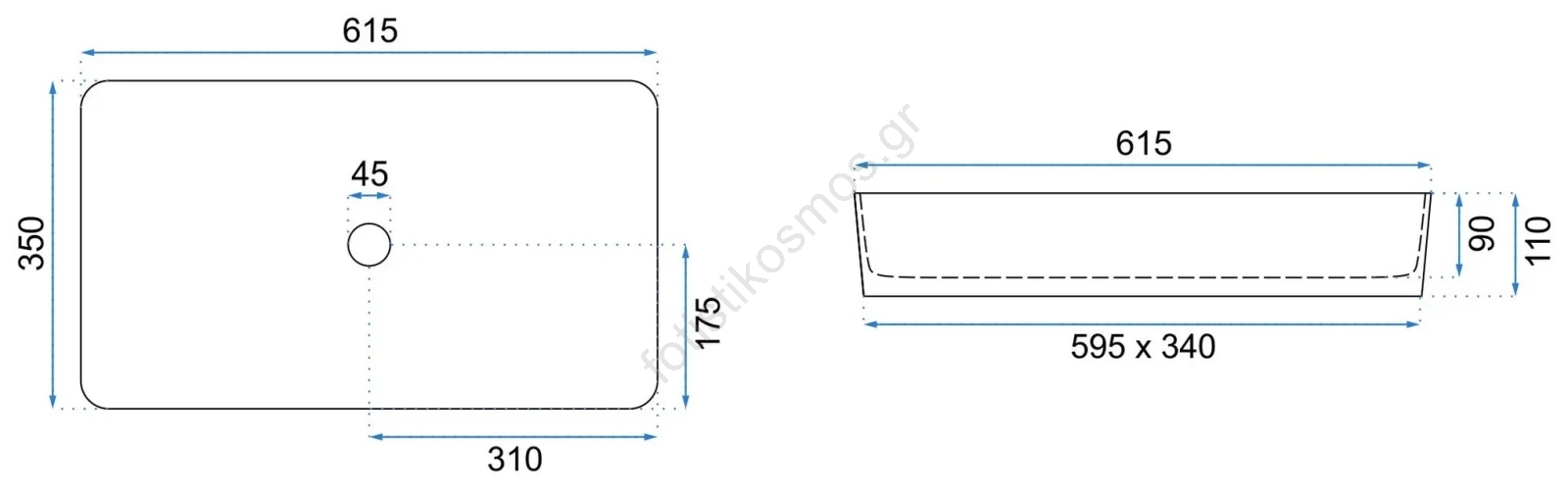 • Ο νιπτήρας προορίζεται για τοποθέτηση πάνω σε πάγκο, αλλά μπορεί επίσης να συνδυαστεί με ντουλάπι μπάνιου.