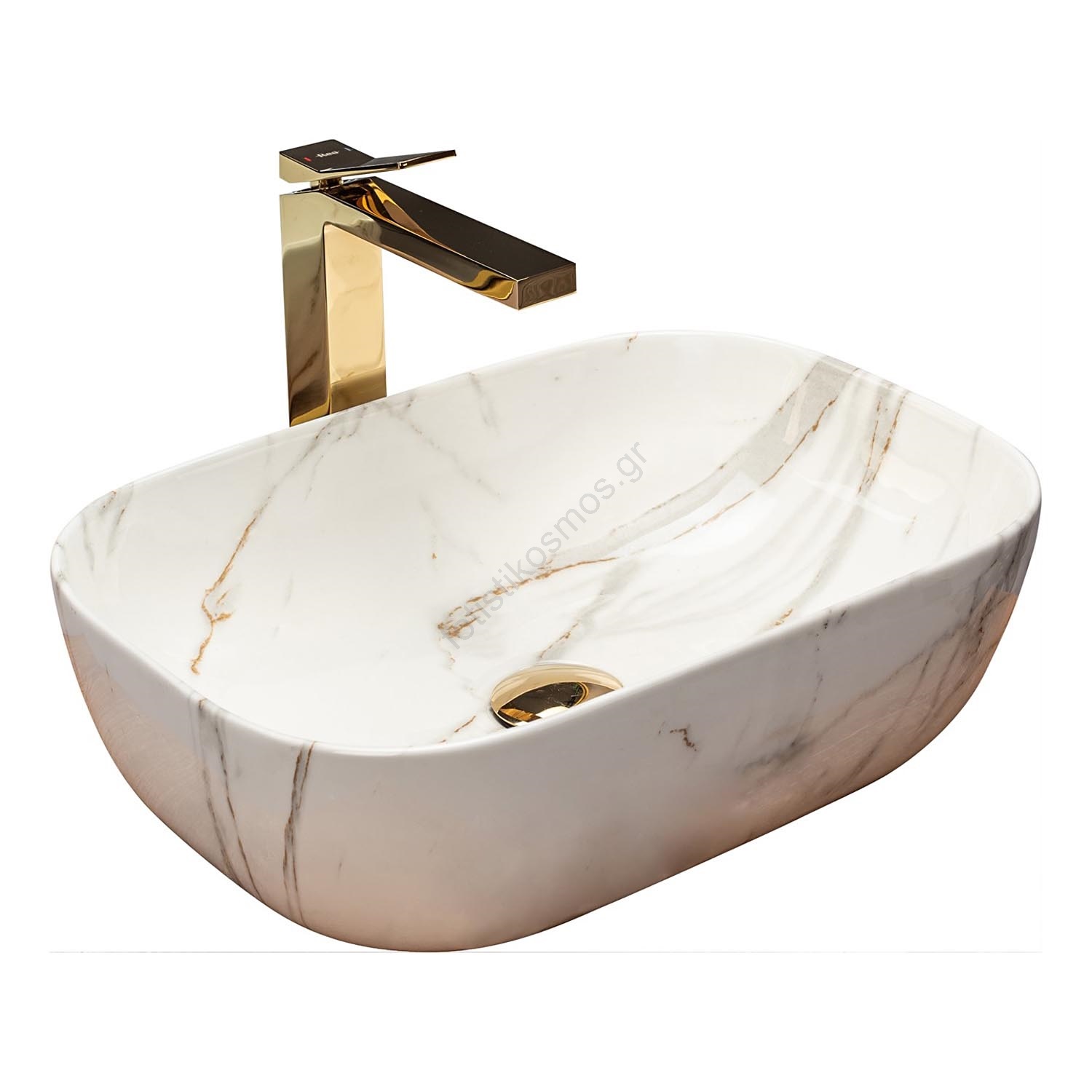 • REA-U6596 - Επιτραπέζιος νιπτήρας BELINDA 33,5x46,5 cm κεραμικός με μαρμάρινο ντεκόρ