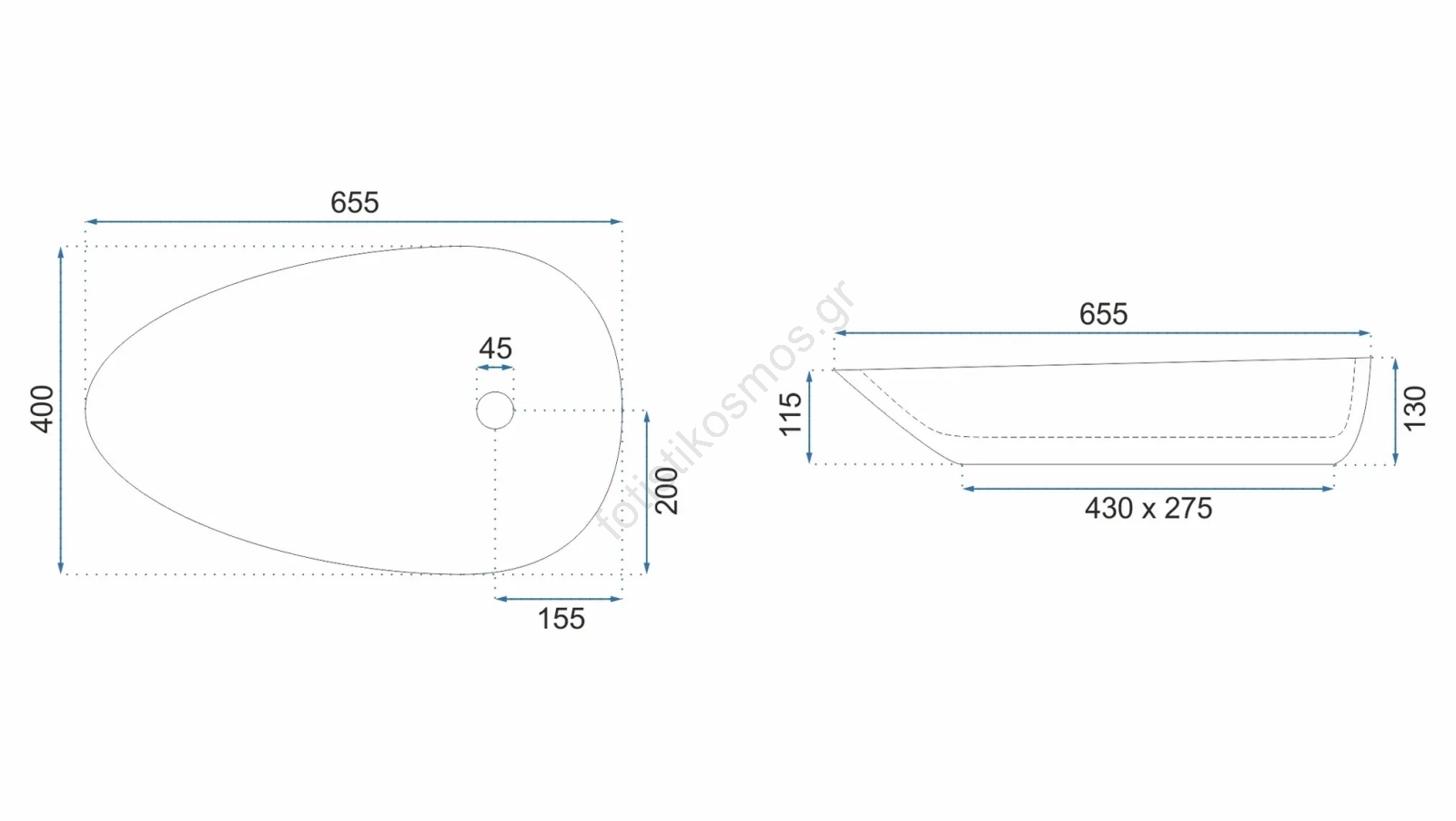 • Σύγχρονος και κομψός νιπτήρας χωρίς υπερχείλιση.