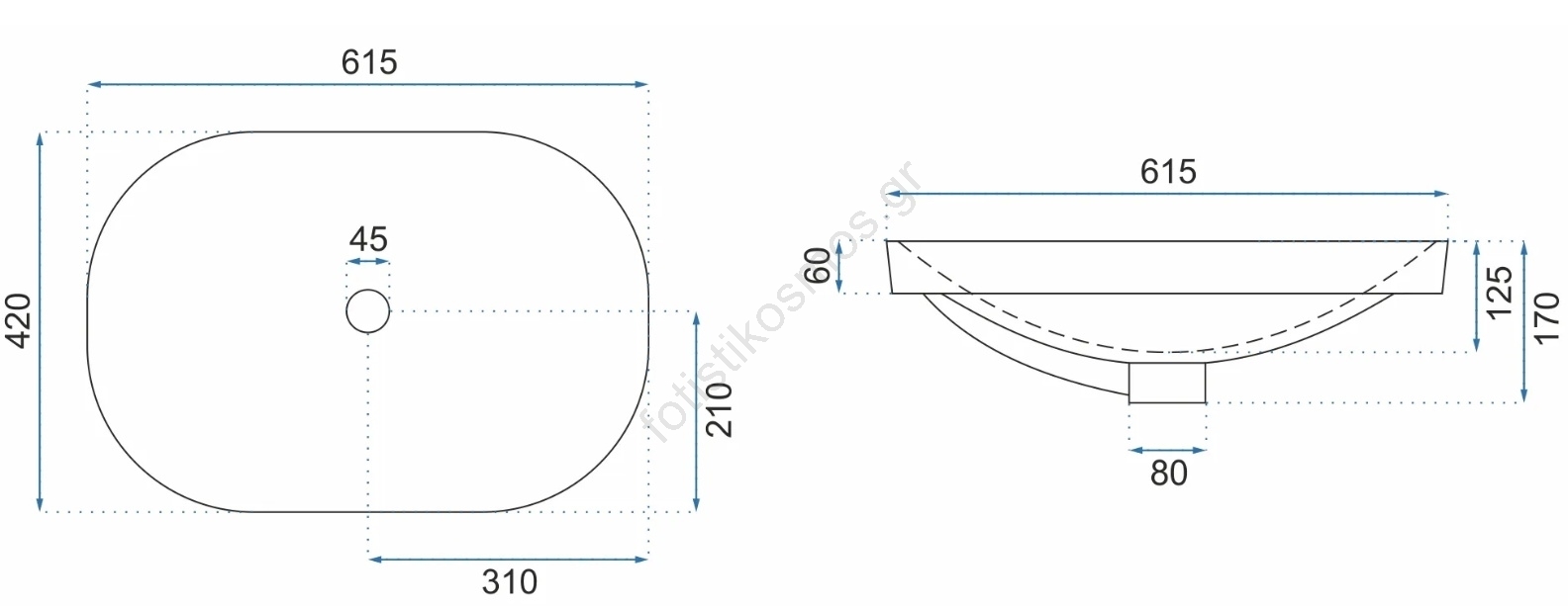 • Ο νιπτήρας είναι κατασκευασμένος από υψηλής ποιότητας υγειονομική κεραμική.