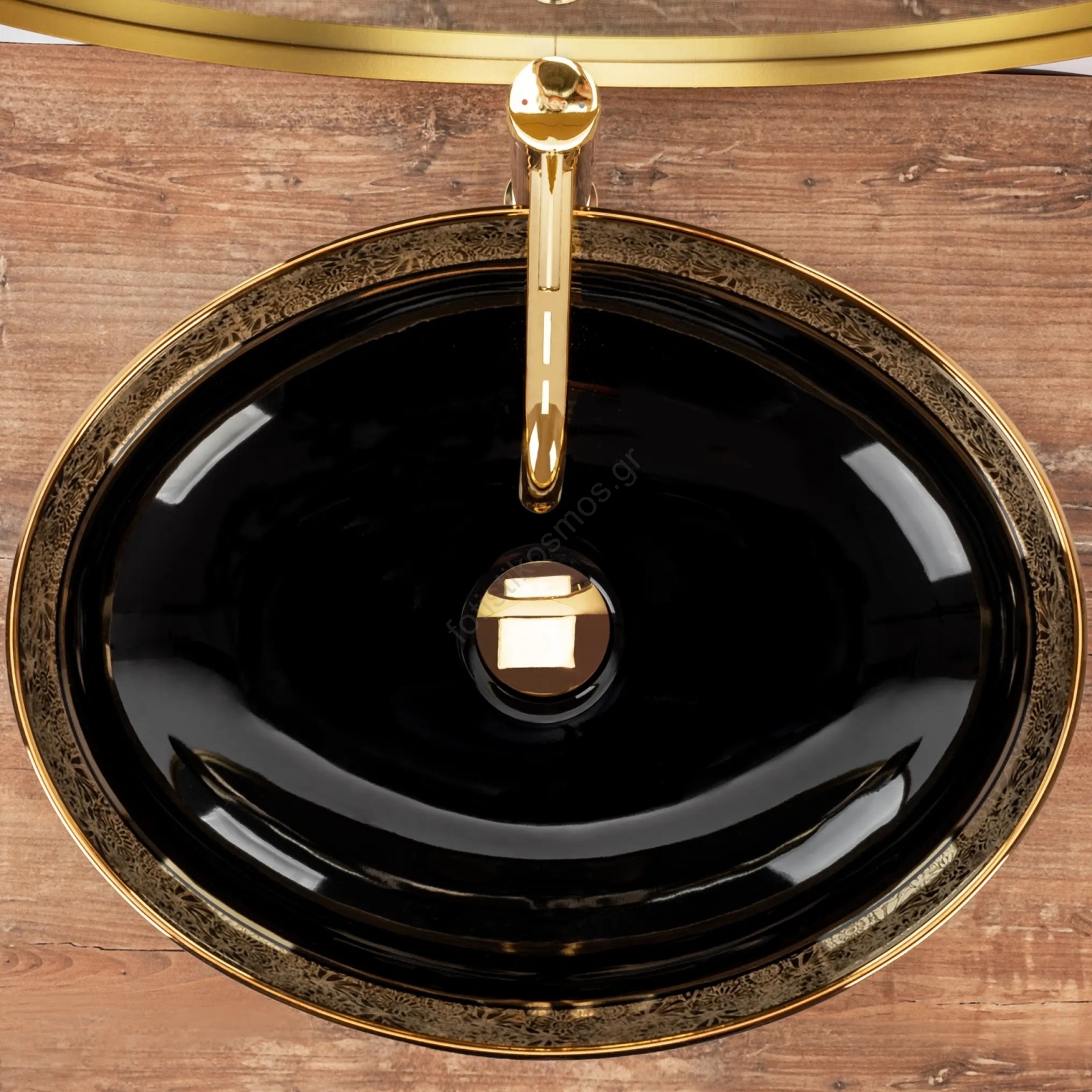 • REA-U8978 - Επιτραπέζιος νιπτήρας MARGOT 40x52 cm κεραμικός/μαύρο/χρυσό