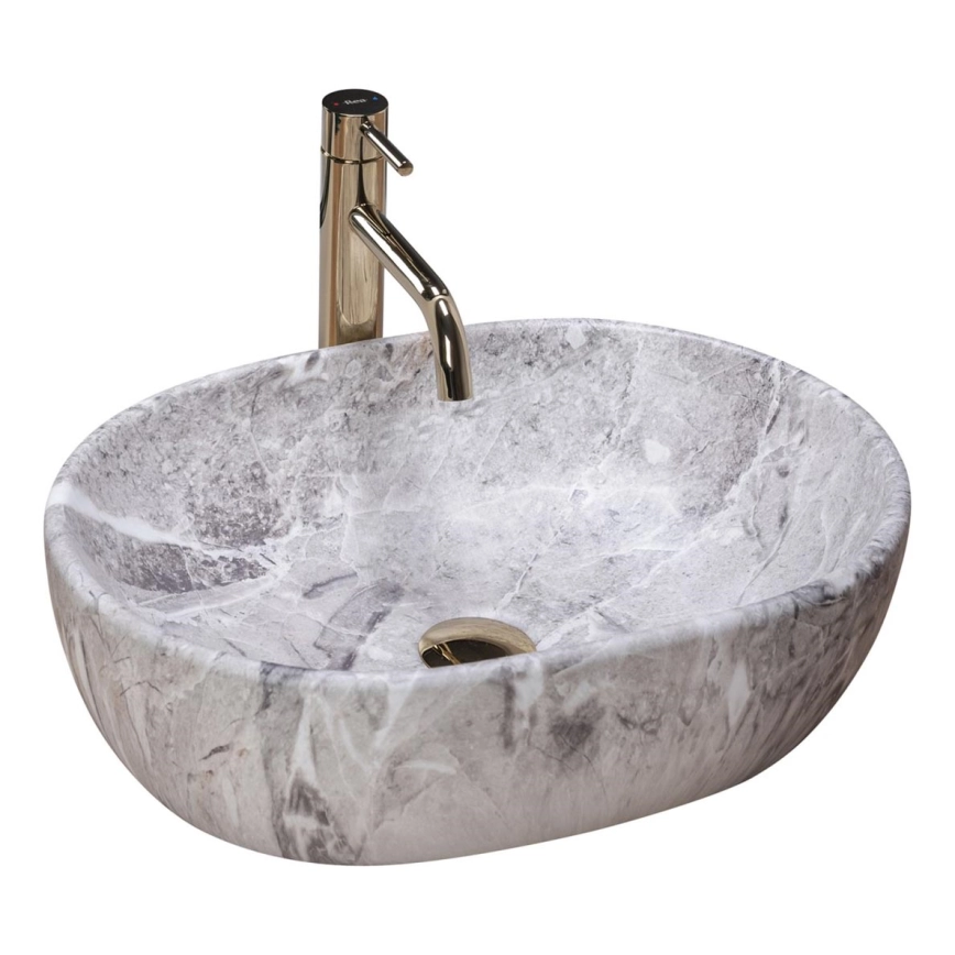 • REA-U9889 - Επιτραπέζιος νιπτήρας LARA 35x48,5 cm κεραμικός/γκρι/με όψη πέτρας