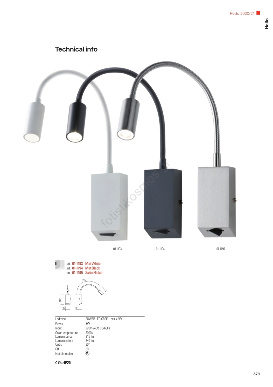 • Redo 01-1193 -Σποτ τοίχου εύκαμπτο  LED HELLO LED/3W/230V λευκό