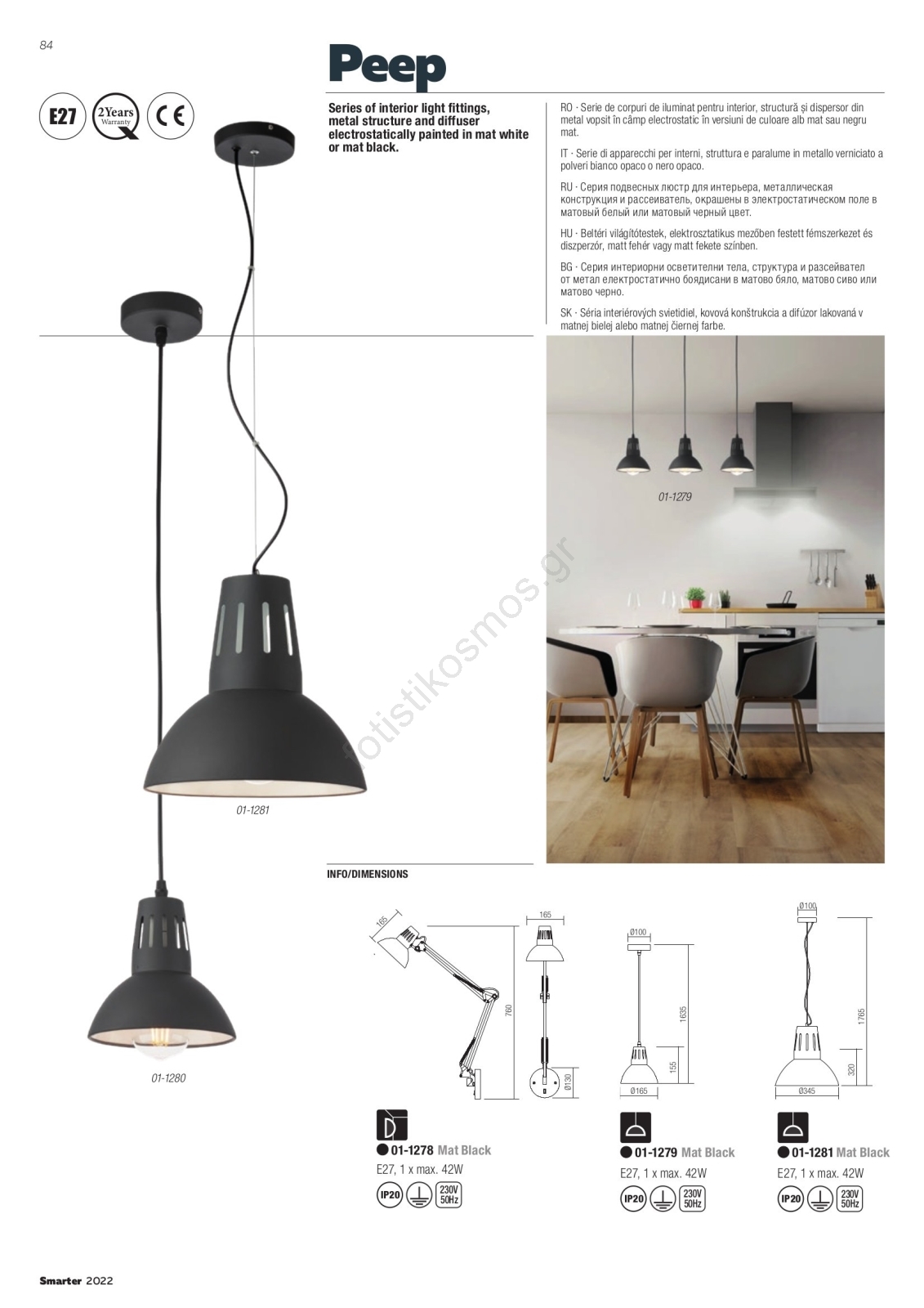 • Redo 01-1281 - Κρεμαστό φωτιστικό με καλώδιο PEEP 1xE27/42W/230V Ø 34,5 cm μαύρο