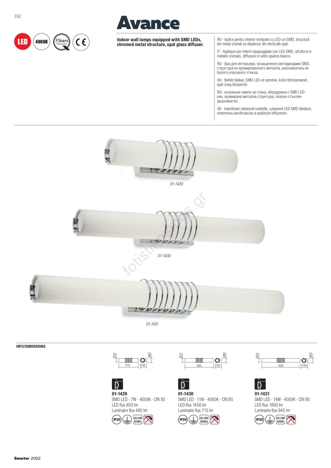 Redo 01-1431 - Φωτιστικό τοίχου LED AVANCE LED/14W/230V 63 cm λευκό | Fotisti kosmos