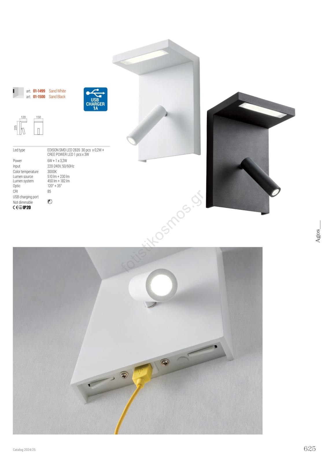 Redo 01-1499 - Φωτιστικό σποτ τοίχου LED AGOS LED/6W/230V + LED/3,2W USB λευκό | Fotisti kosmos