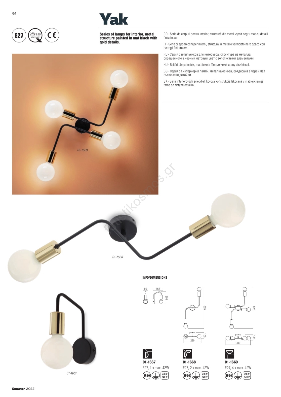 Redo 01-1669 - Φωτιστικό οροφής YAK 4xE27/42W/230V