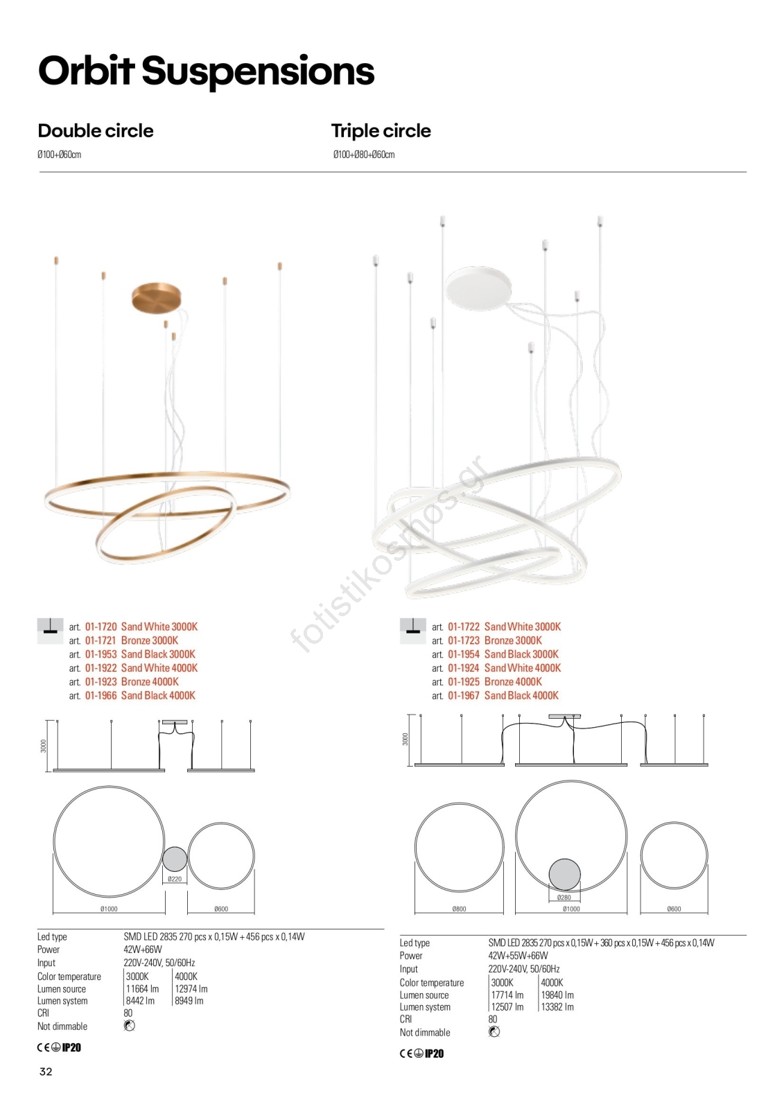Redo 01-1721 - Πολύφωτο LED σε σχοινί ORBIT LED/42W + LED/66W/230V μπρονζέ | Fotisti kosmos