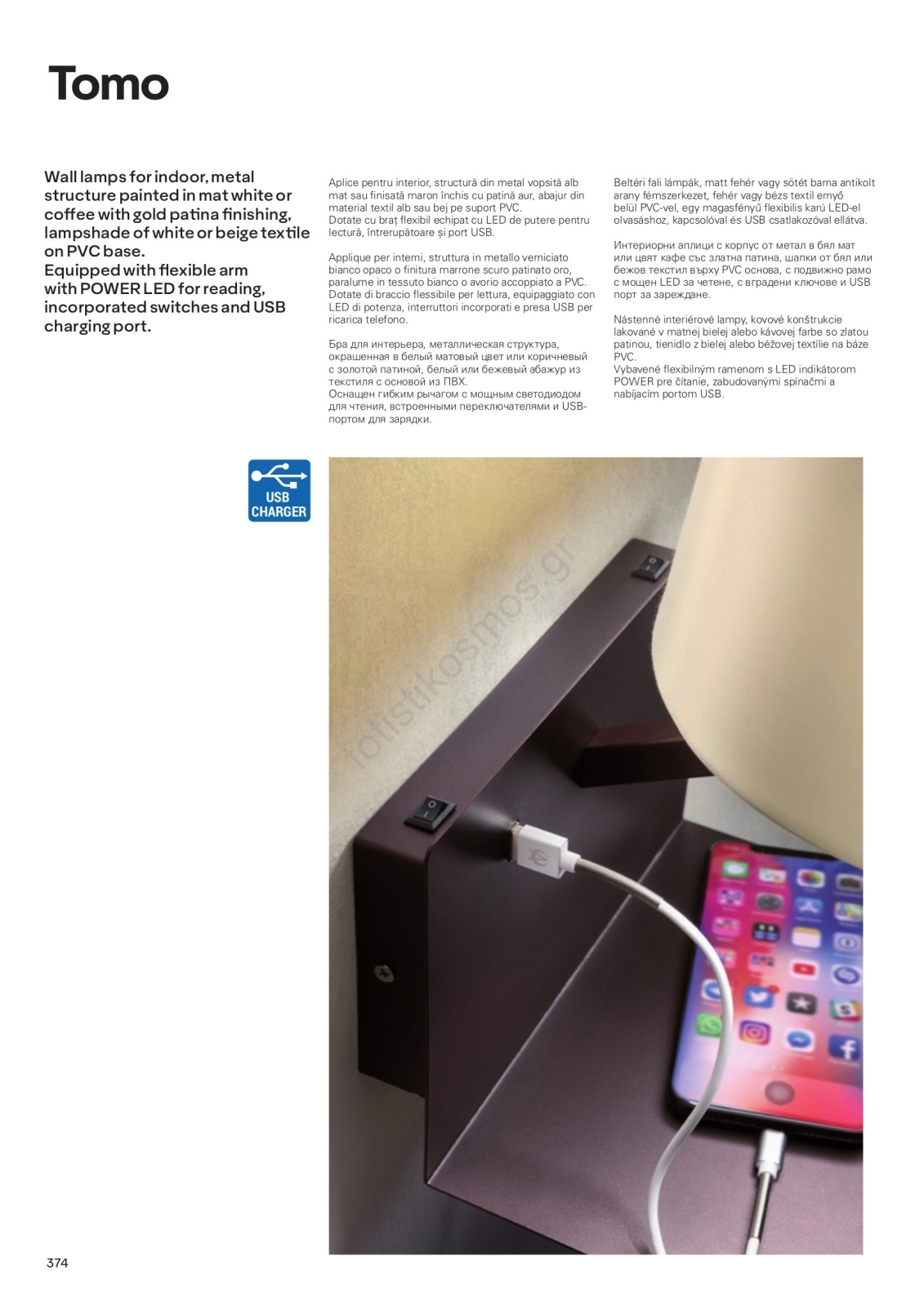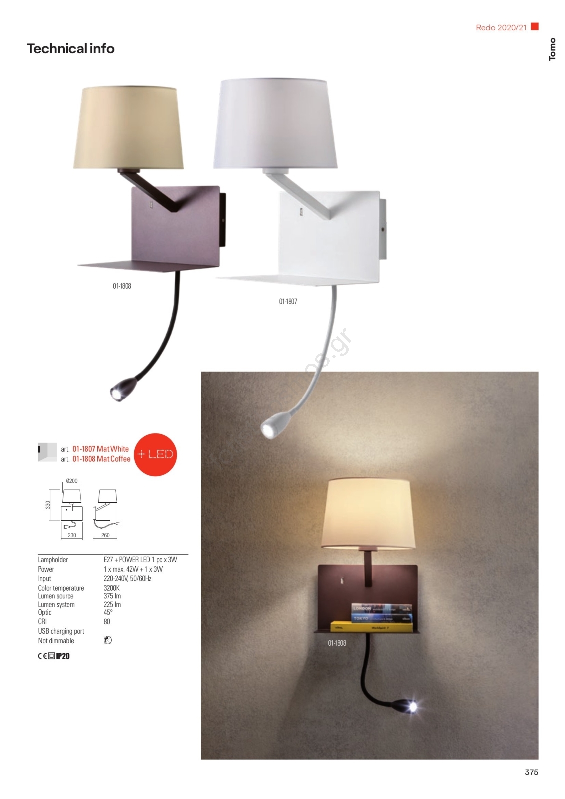 Redo 01-1807 - LED επιτοίχιο φωτιστικό TOMO με ευλύγιστο φωτιστικό ανάγνωσης 1xE27/42W/230V + LED/3W/230V λευκό