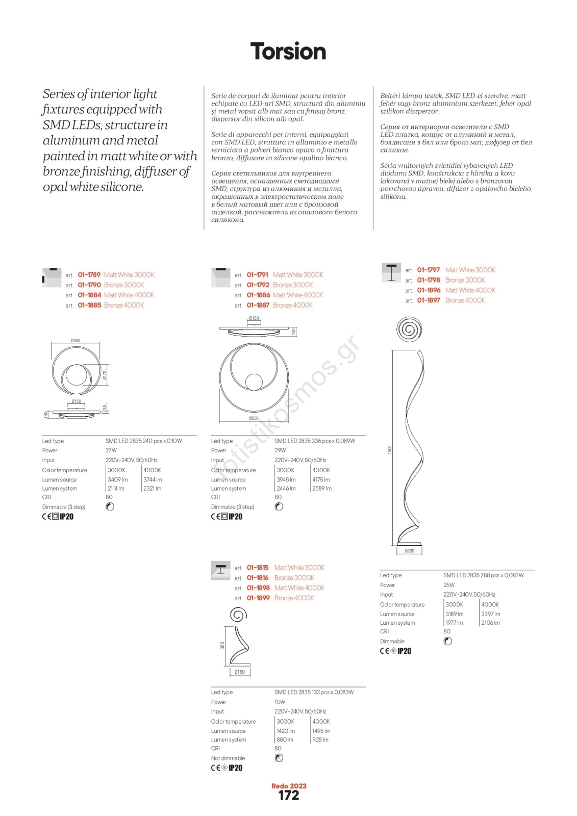 • Redo 01-1886 - Ρυθμιζόμενο LED φωτιστικό οροφής TORSION LED/29W/230V, Ø 55 cm, λευκό