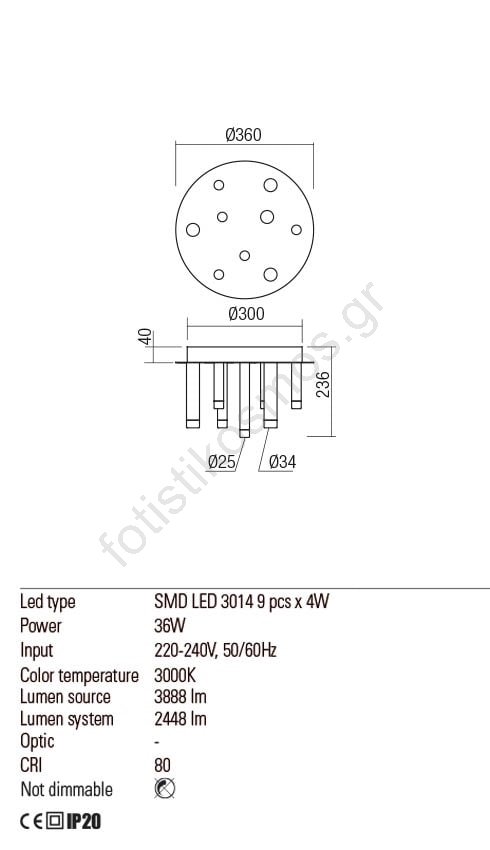 • Redo 01-2042 - Φωτιστικό οροφής LED MADISON 9xLED/4W/230V γυαλιστερό χρώμιο/μαύρο/χαλκός