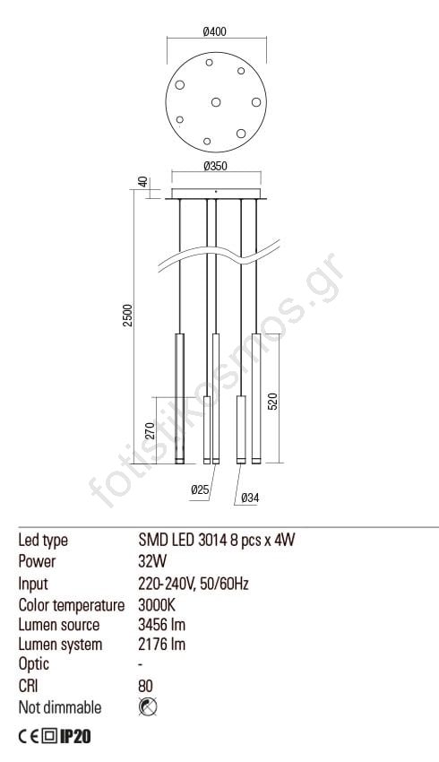 • Redo 01-2053 - Κρεμαστό φωτιστικό οροφής LEDMADISON 8xLED/4W/230V γυαλιστερό χρώμιο/μαύρο/χαλκός