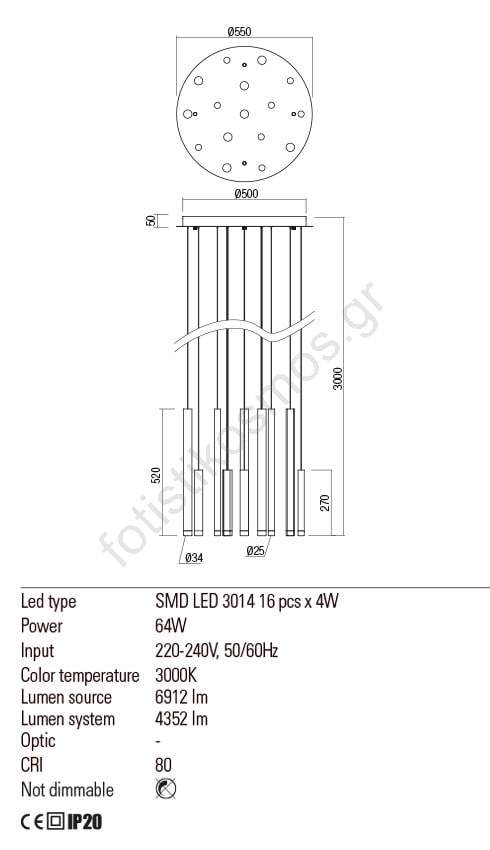 Redo 01-2060 - Κρεμαστό φωτιστικό οροφής LED MADISON 16xLED/4W/230V μαύρο | Fotisti kosmos
