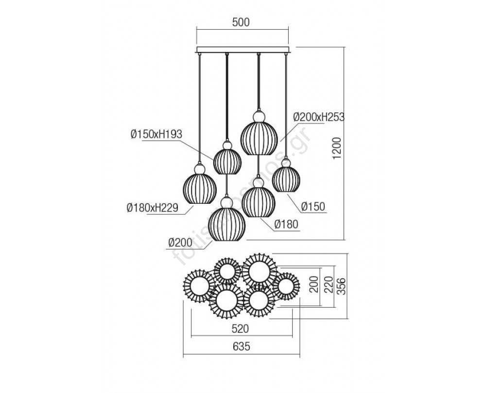 • Redo 01-2070 - Πολύφωτο με συρματόσχοινο PLUMEN 6xE14/42W/230V χαλκός