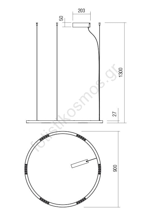 Redo 01-2205 - Κρεμαστό φωτιστικό οροφής LED UNION LED/50W/230V 3000K διάμετρος 90 cm λευκό | Fotis