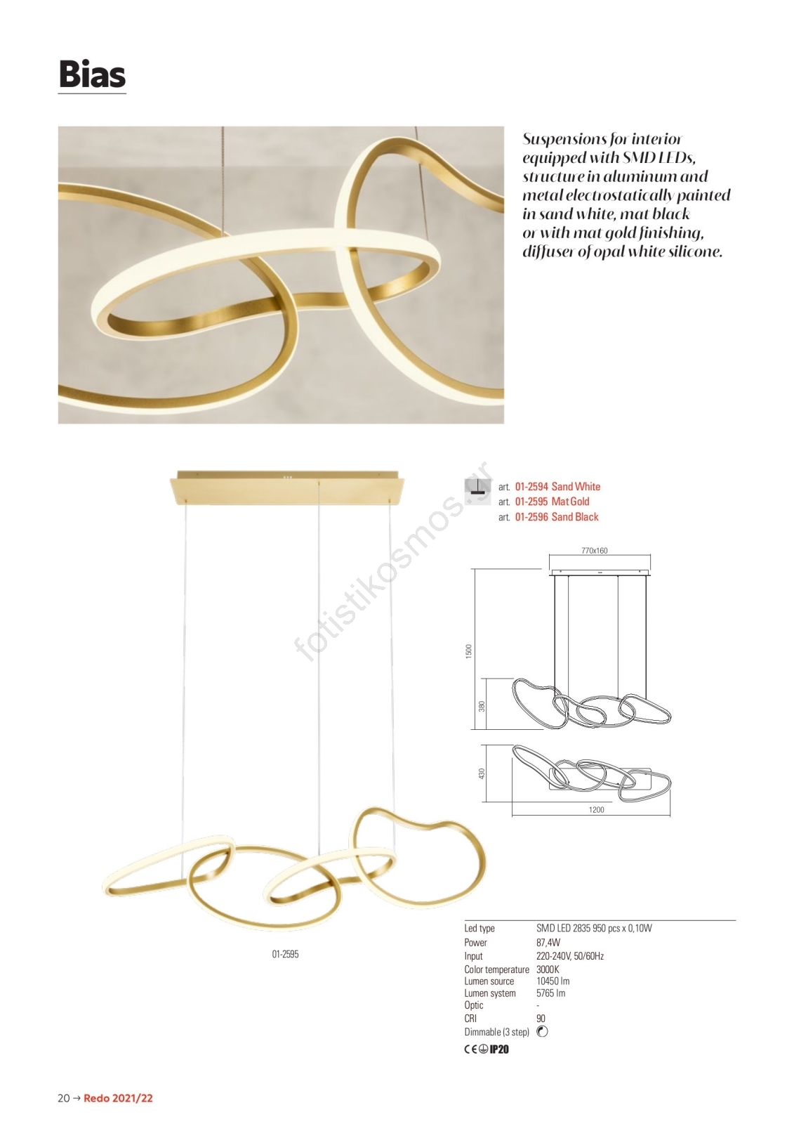 Redo 01-2597 - LED ρυθμιζόμενο κρεμαστό φωτιστικό σε καλώδιο BIAS LED/108,6W/230V 3000K λευκό | Foti