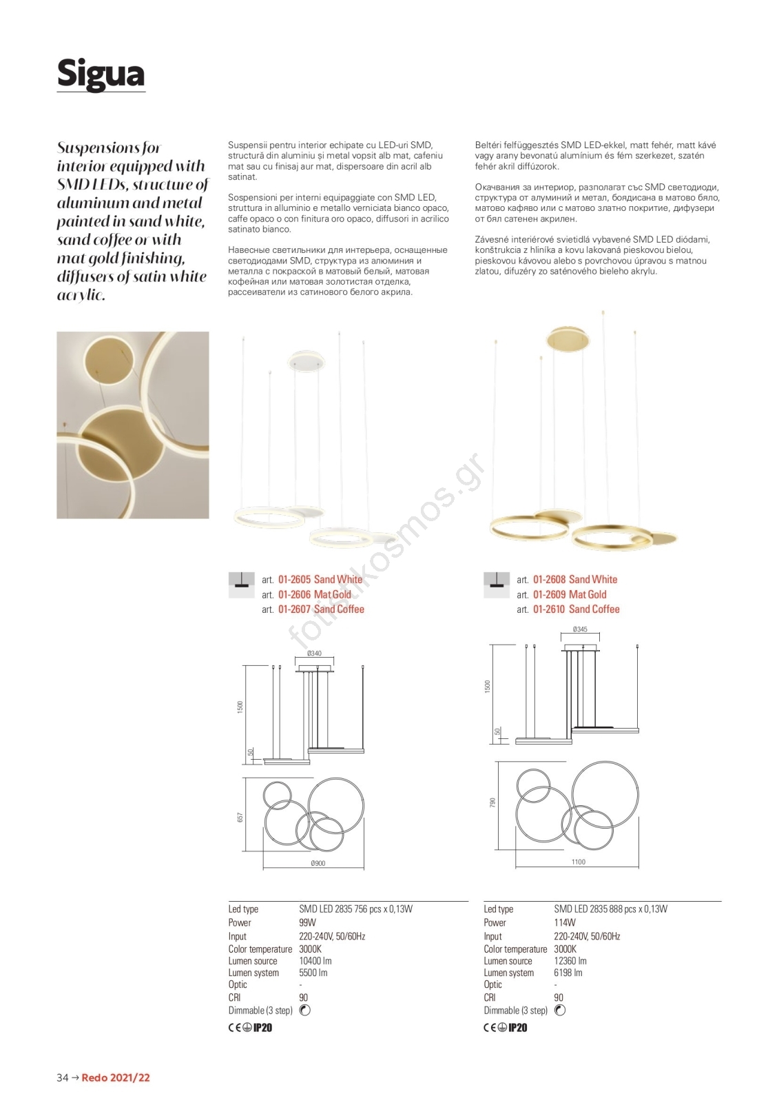 • Redo 01-2606 - Led Dimmable κρεμαστό φωτιστικό οροφής SIGUA LED/99W/230V CRI 90 3000K χρυσό