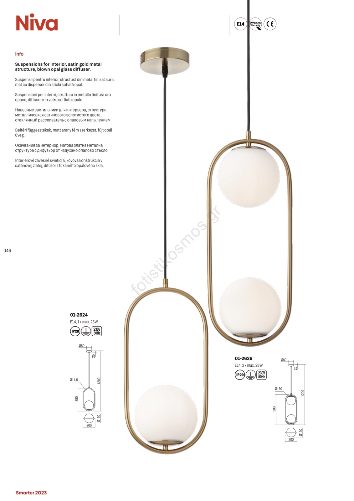 Redo 01-2624 - Κρεμαστό φωτιστικό οροφής NIVA 1xE14/28W/230V | Fotisti kosmos