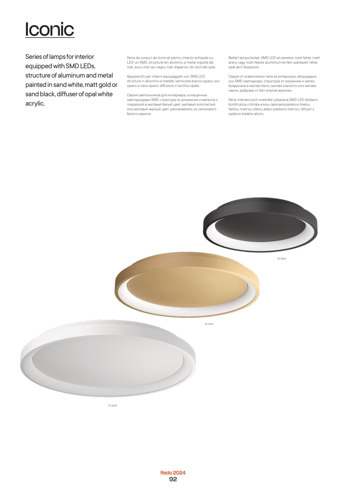 Redo 01-2668 - LED Dimmable φωτιστικό οροφής ICONIC LED/40W/230V διάμετρος 48 cm μαύρο