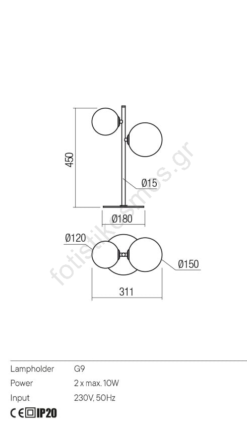 Redo 01-2784 - Eπιτραπέζια λάμπα ROY 2xG9/10W/230V | Fotisti kosmos