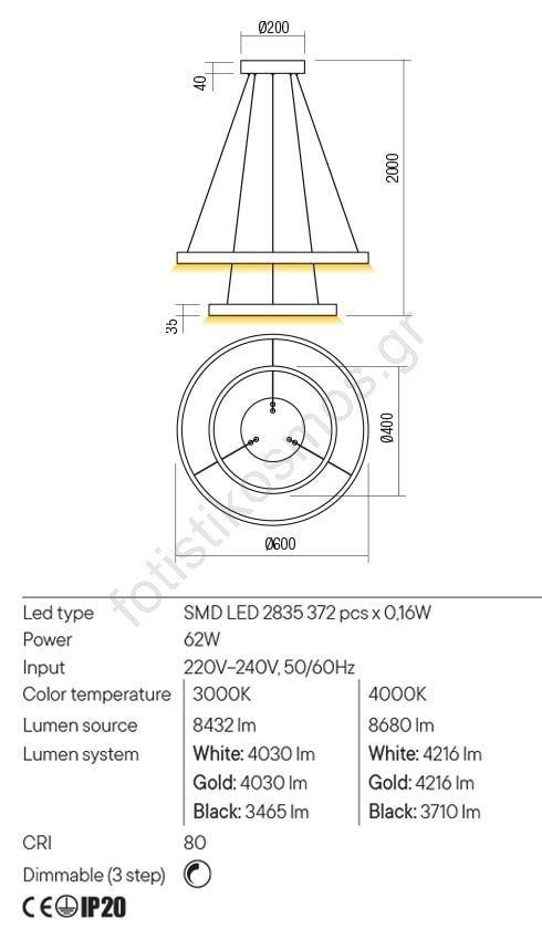 • Redo 01-2889 - Led Dimmable κρεμαστό φωτιστικό οροφής FEBE LED/62W/230V χρυσαφί