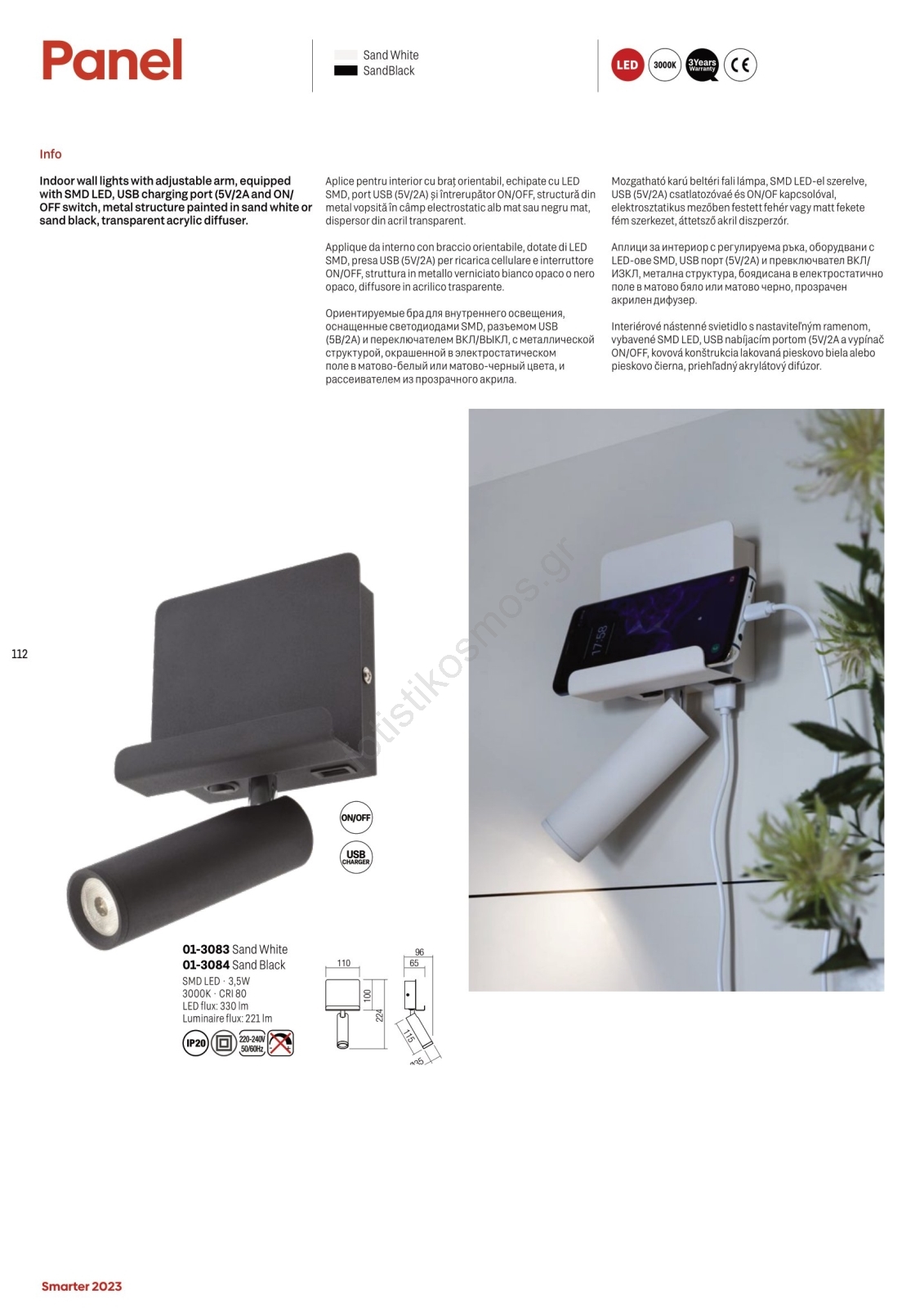 Redo 01-3083 - Φωτιστικό σποτ τοίχου LED PANEL LED/3,5W/230V USB λευκό | Fotisti kosmos