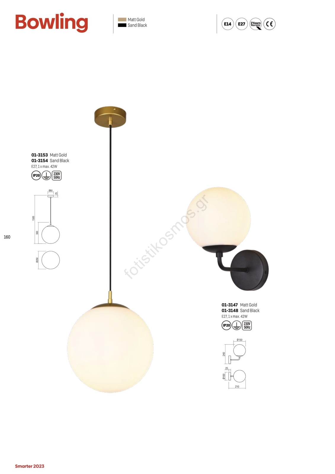 Redo 01-3154 - Κρεμαστό φωτιστικό οροφής BOWLING 1xE27/42W/230V μαύρο