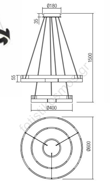 • Redo 01-3179 - Led Dimmable κρεμαστό φωτιστικό οροφής CASTLE LED/60W/230V μαύρο