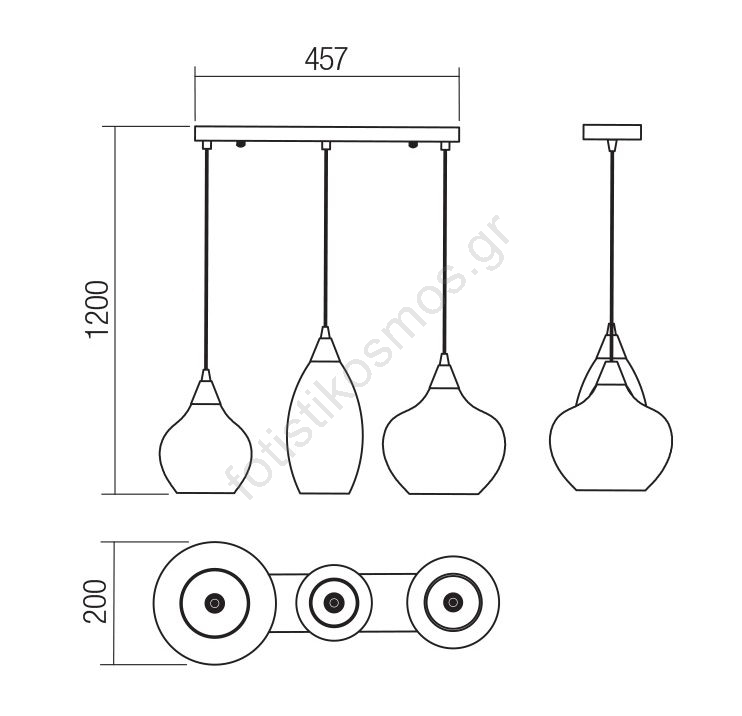 Redo 01-3193 - Πολύφωτο με συρματόσχοινο TANNER 3xE14/28W/230V | Fotisti kosmos