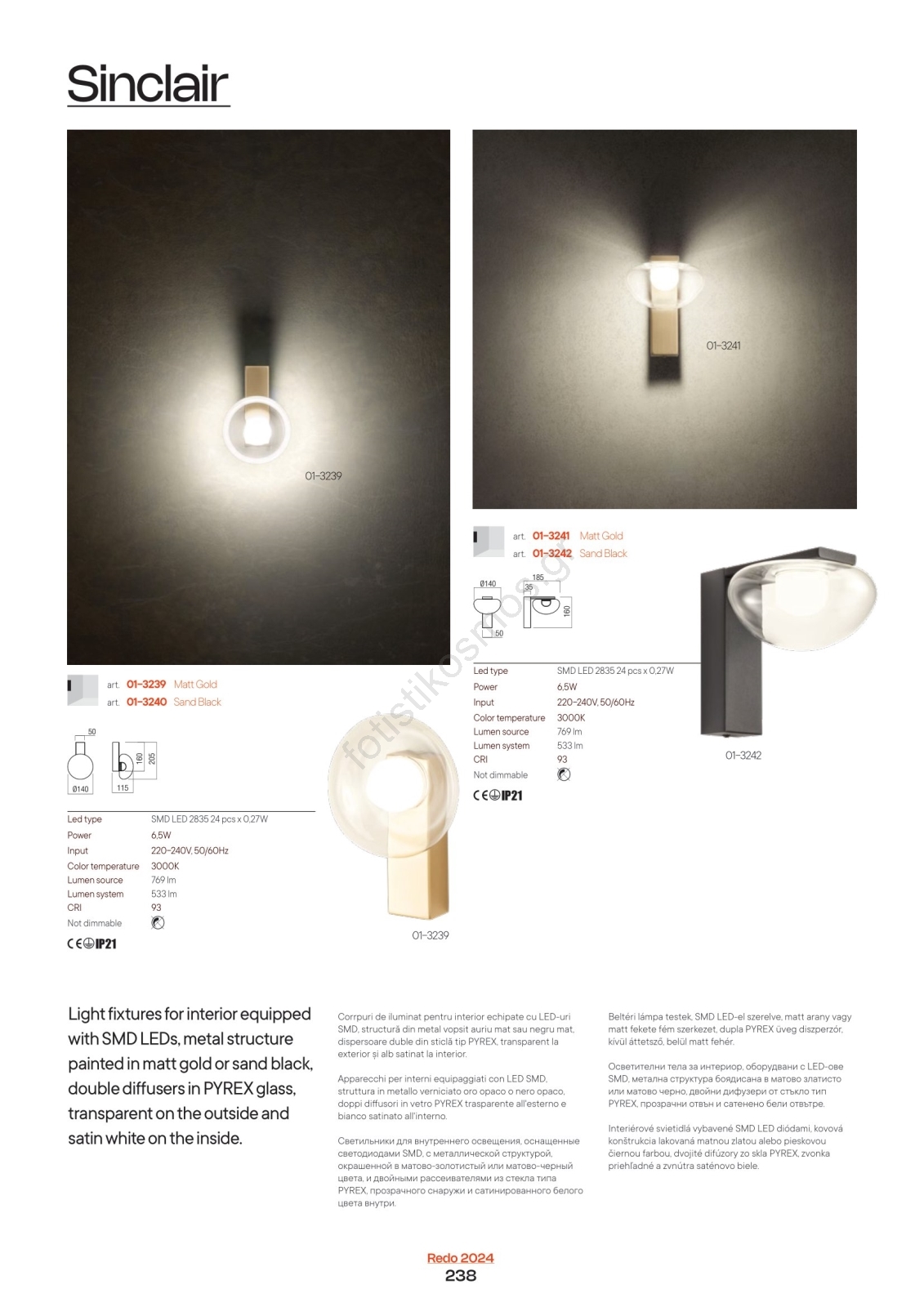 • Redo 01-3239 - LED Επιτοίχιο φωτιστικό SINCLAIR LED/6,5W/230V CRI 93 IP21 χρυσό
