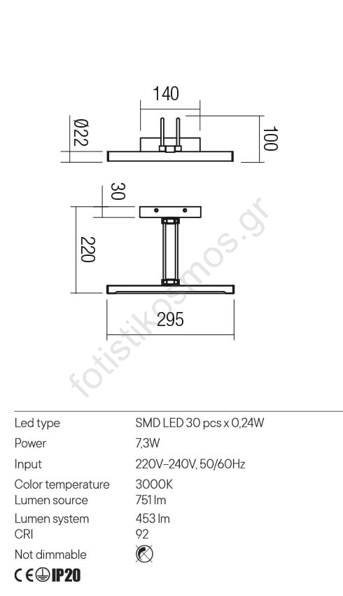 Redo 01-3468 - Φωτιστικό πίνακα LED IKON LED/7,3W/230V 29,5 cm CRI 92 λευκό | Fotisti kosmos